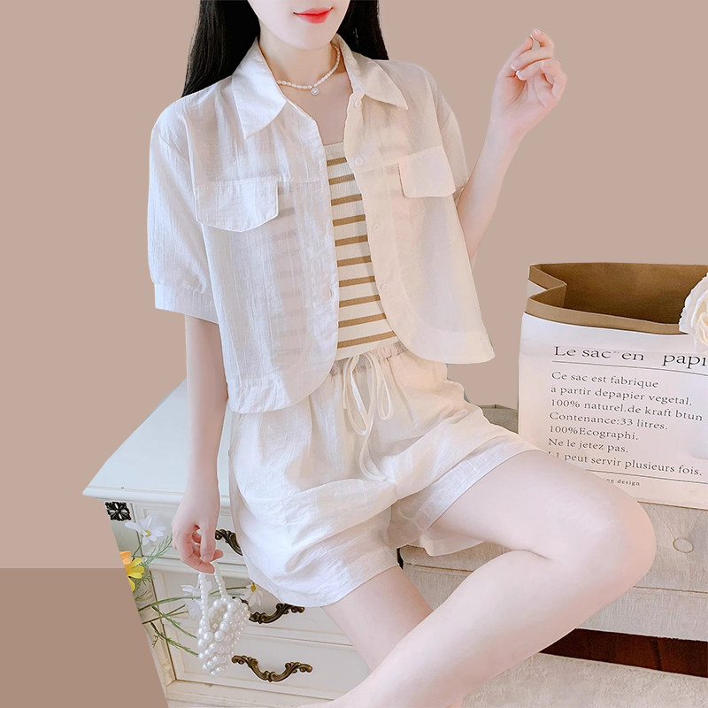 2026夏季新款时尚防晒衫上衣衬衫短裤洋气小个子休闲套装女三件套