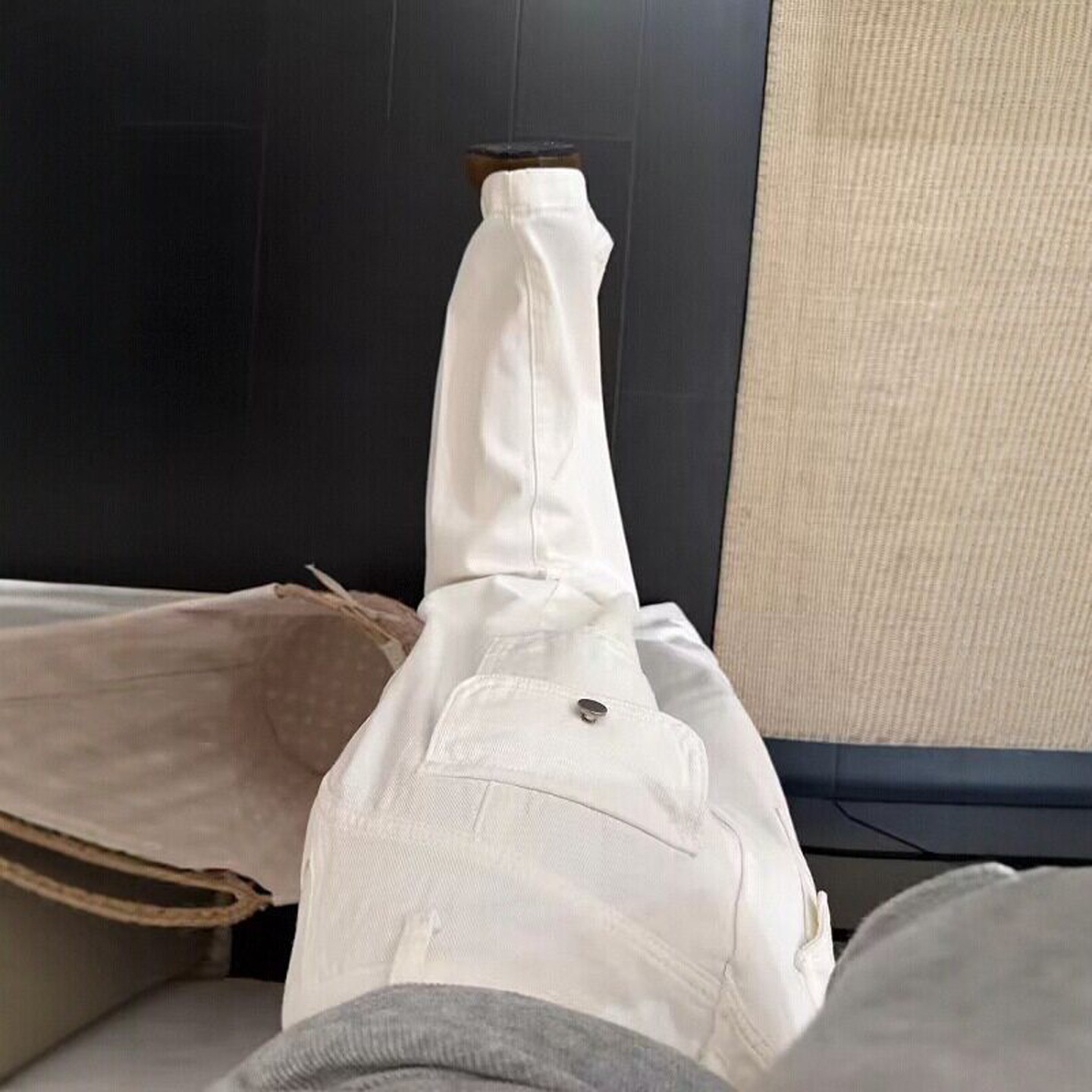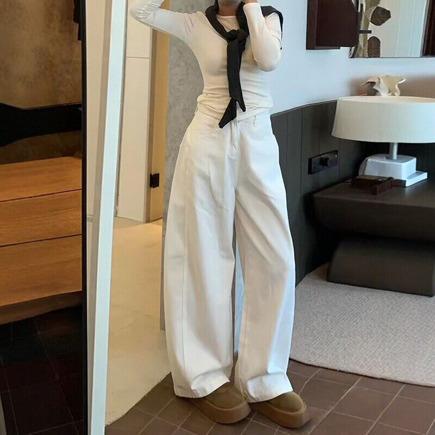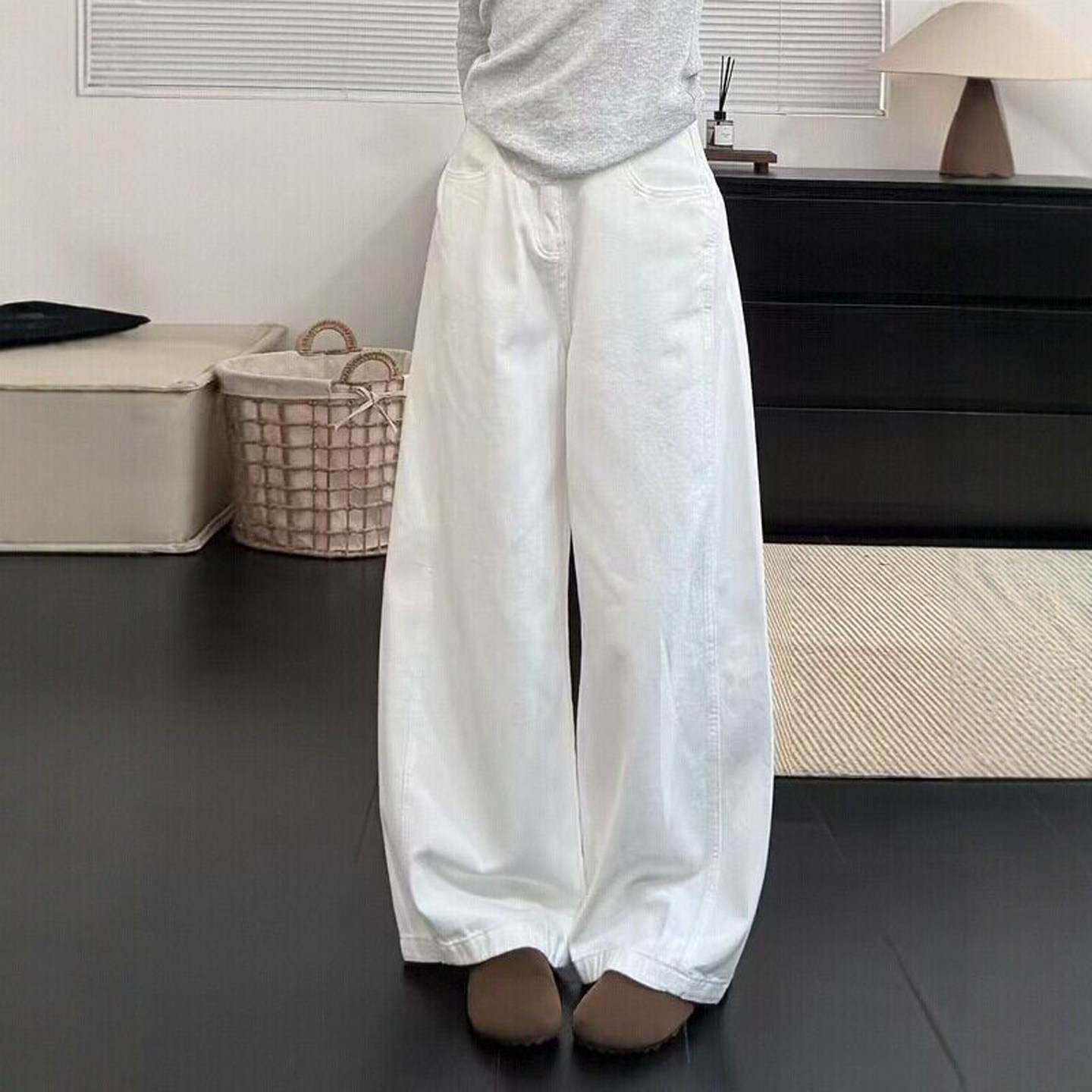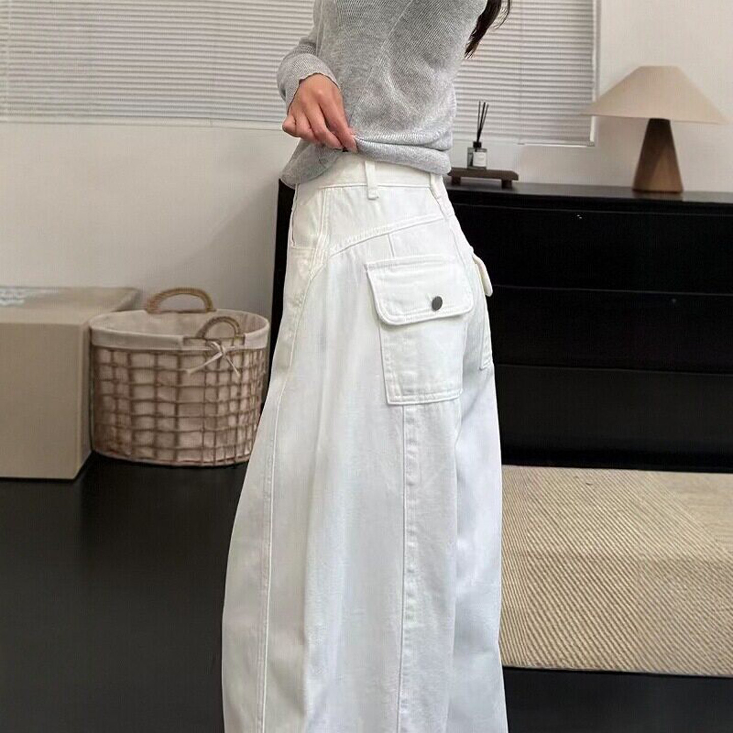 白色美式工装风弯刀牛仔裤女2026春夏季新款小众设计宽松阔腿裤子