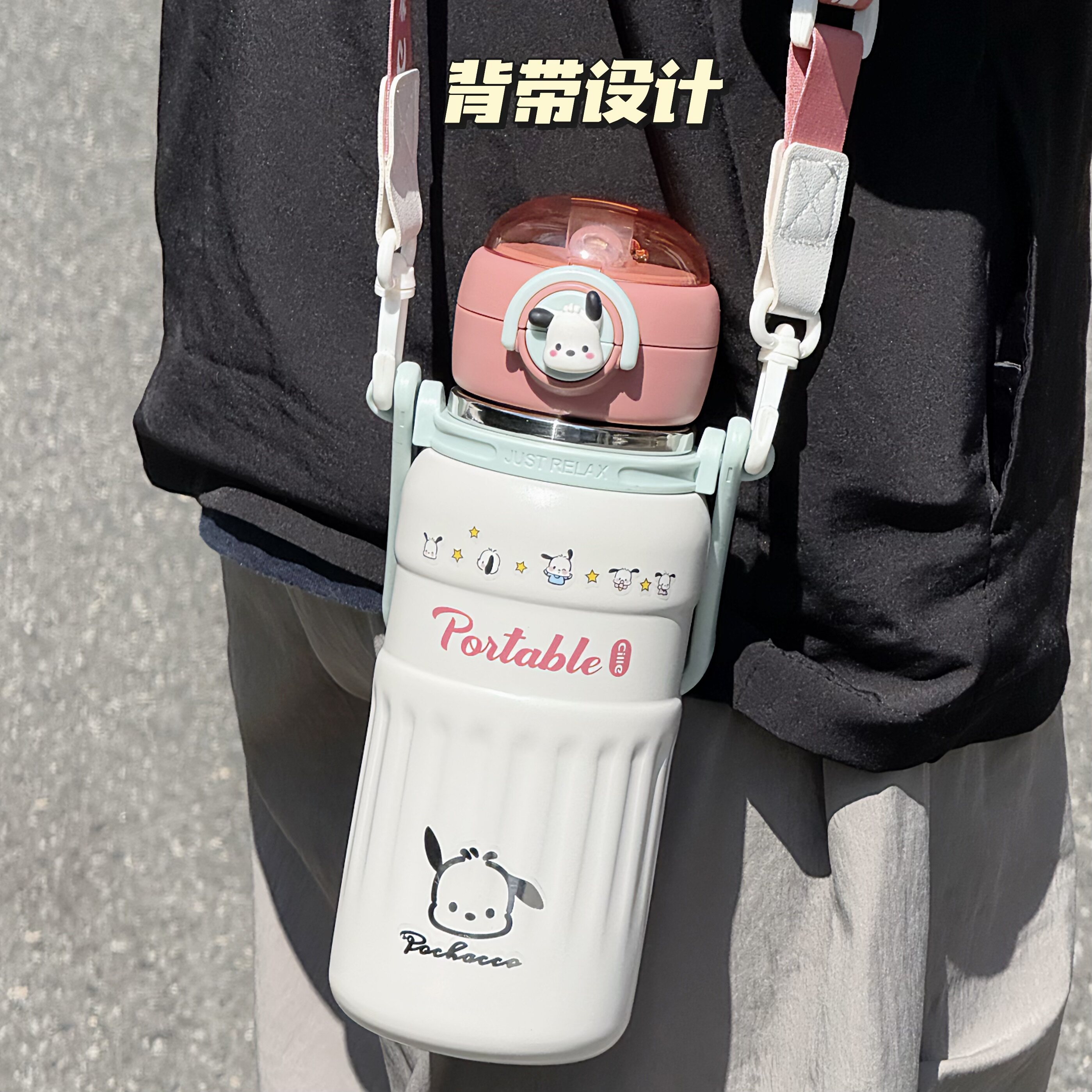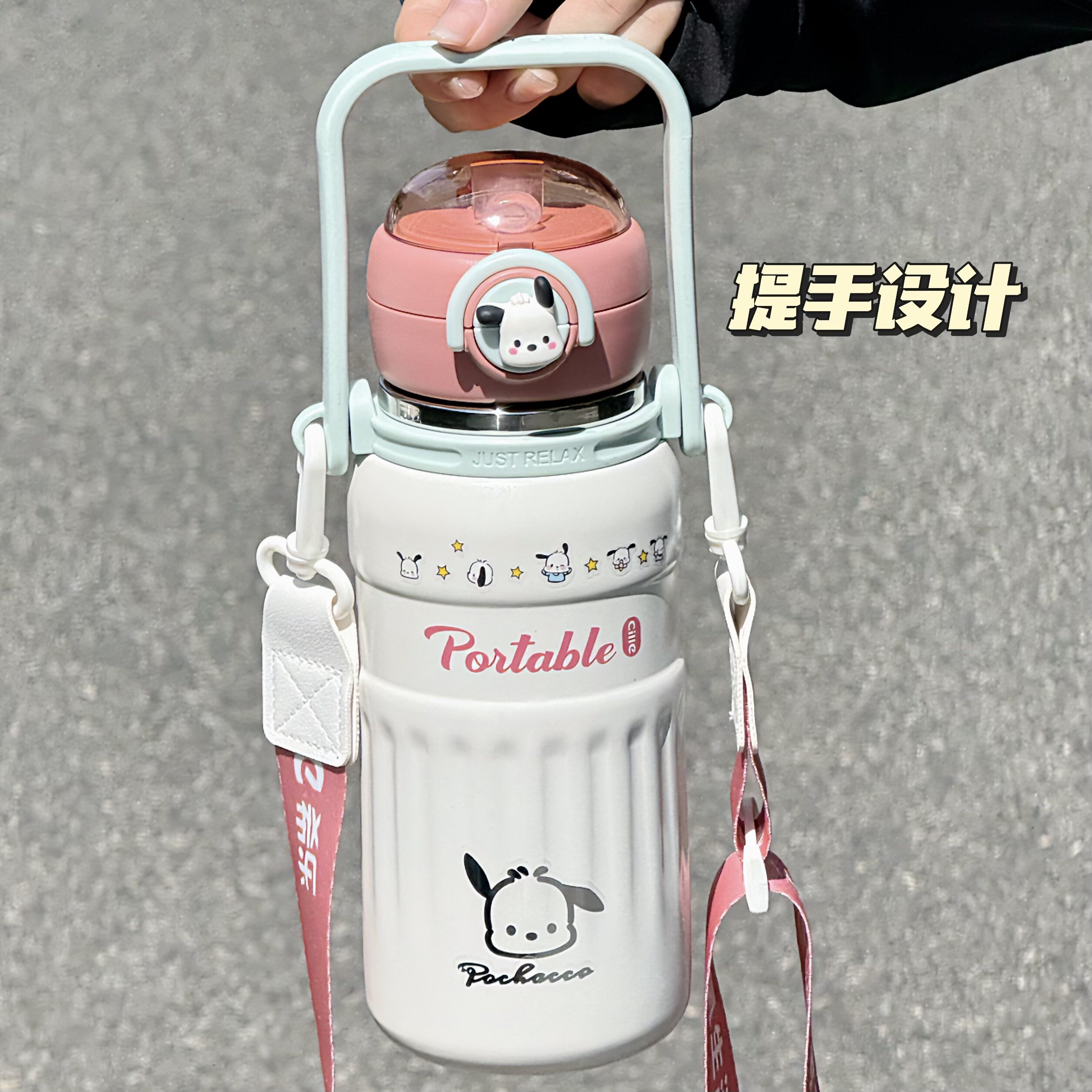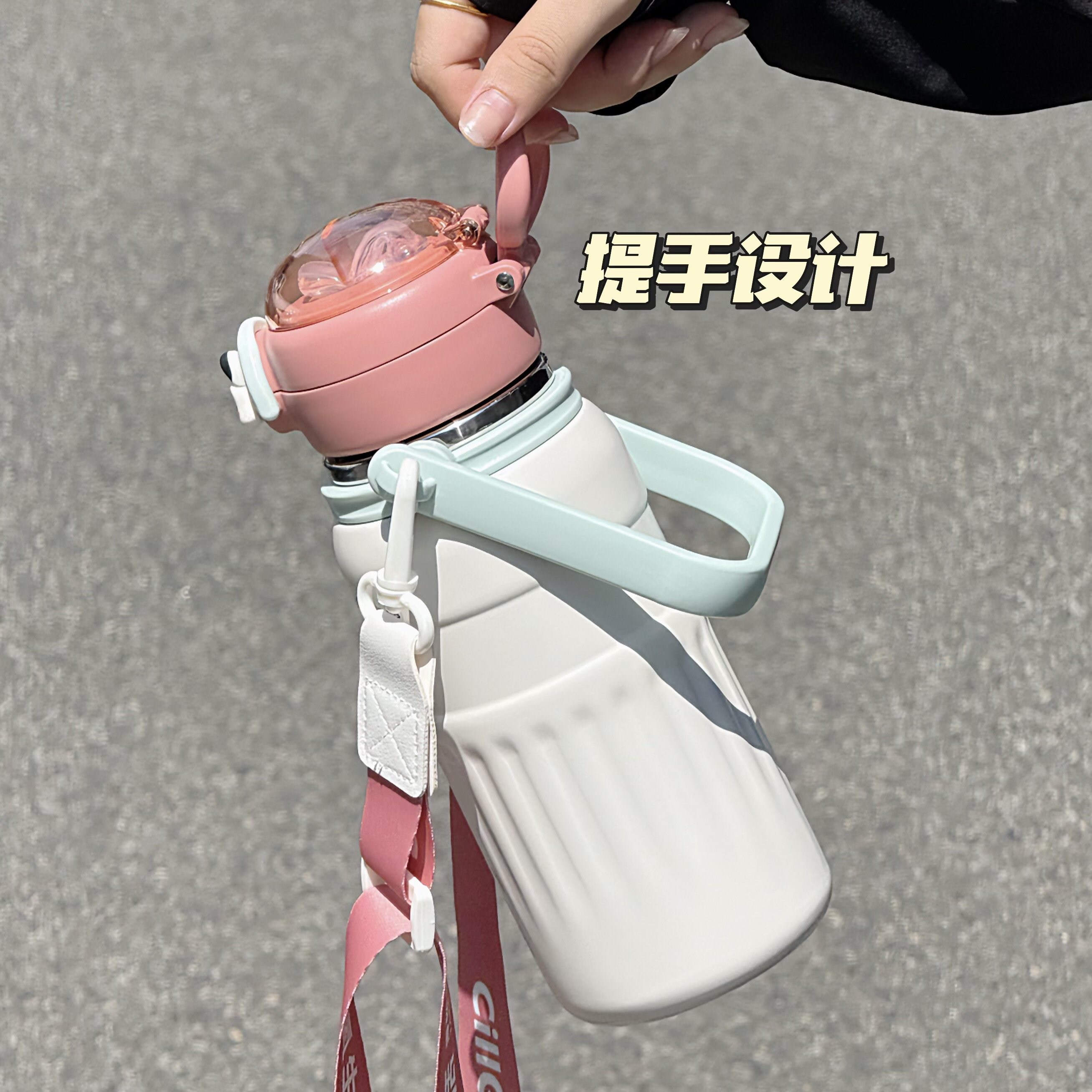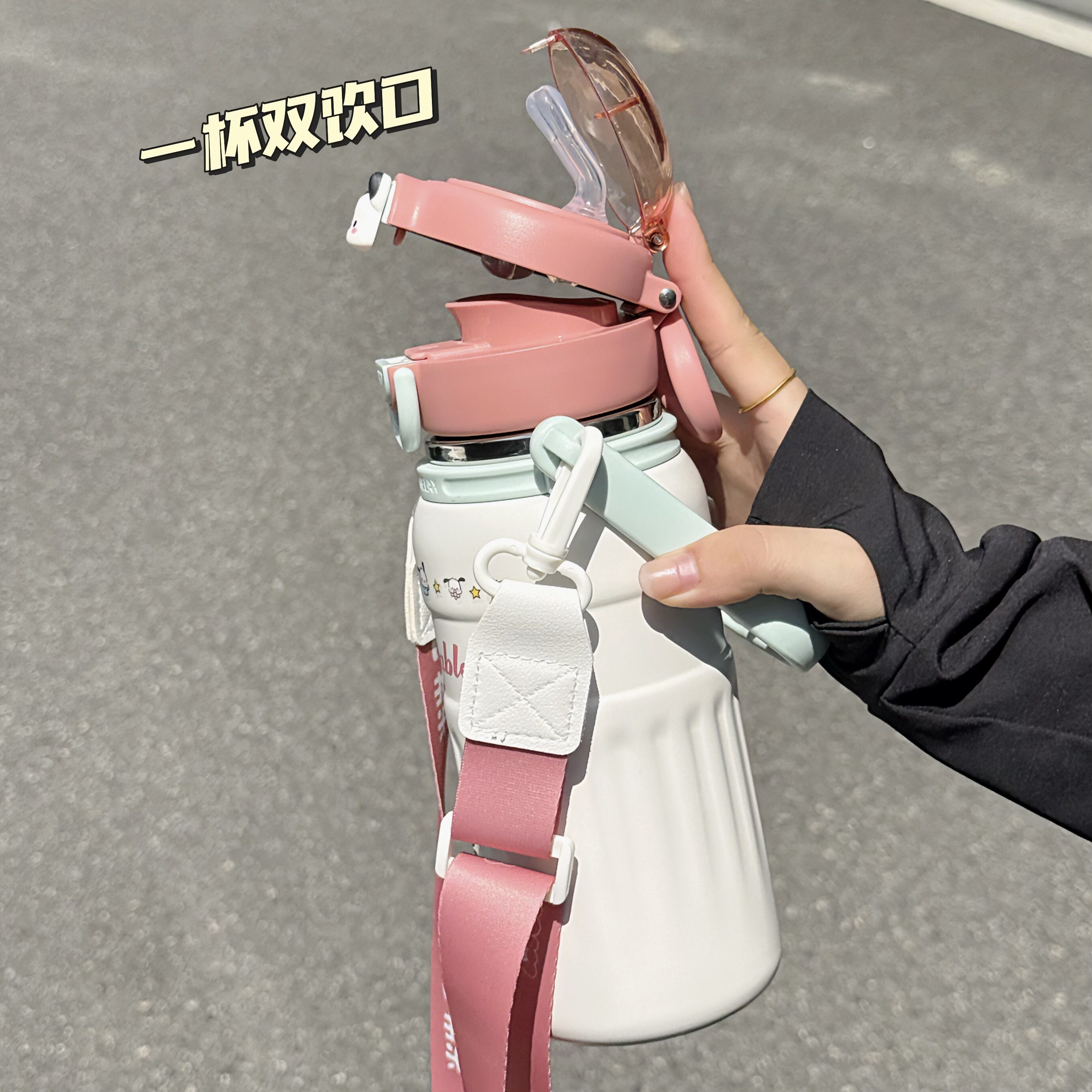 希乐保温杯女大容量高颜值学生可斜挎双饮吸管杯户外便携式水杯子