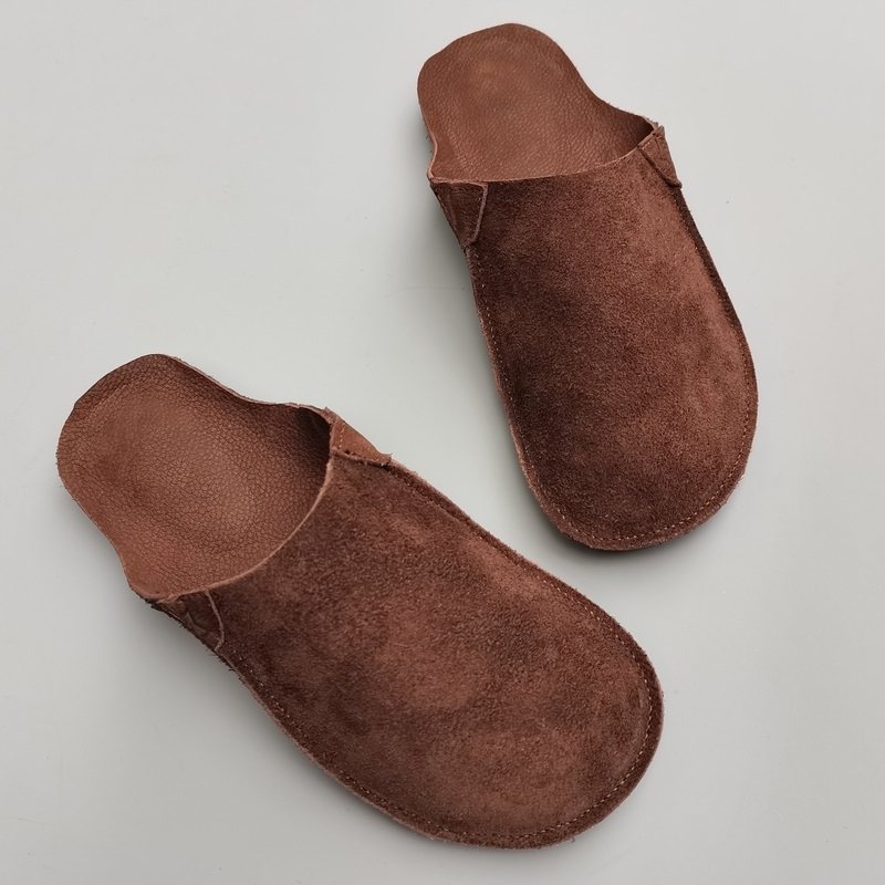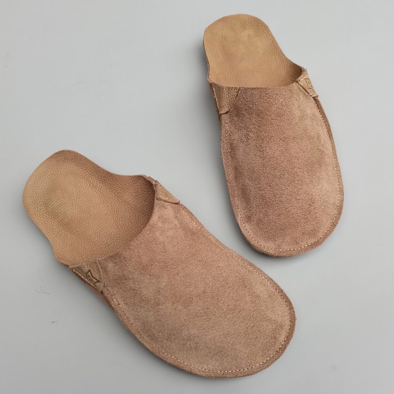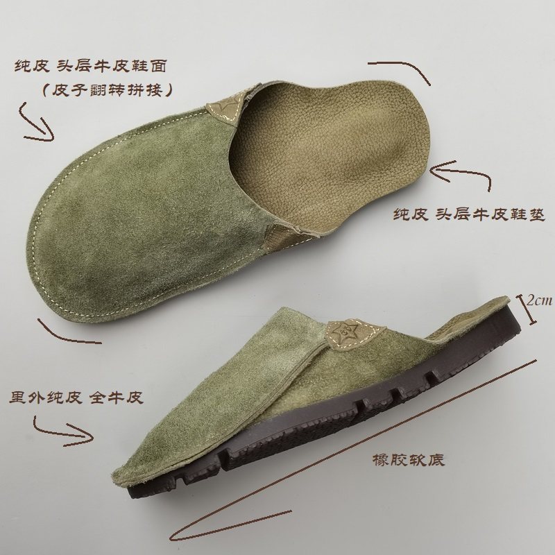春夏季全真皮纯皮女包头拖鞋外贸圆头层牛皮透气原单软平底凉拖鞋