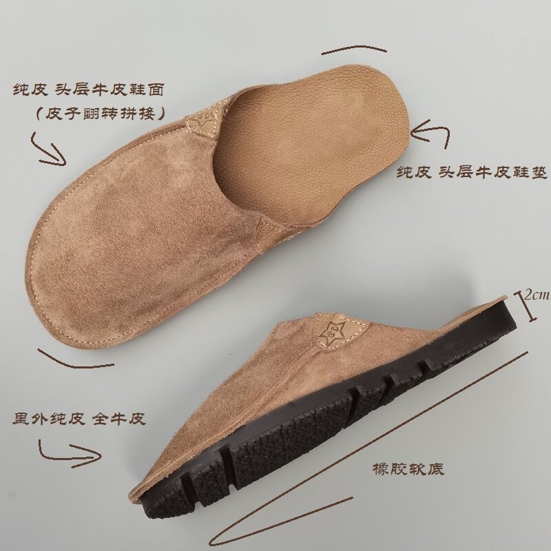 里外真皮包头女凉拖鞋外贸全头层牛皮居家外穿平软底原单休闲拖鞋