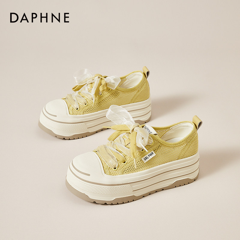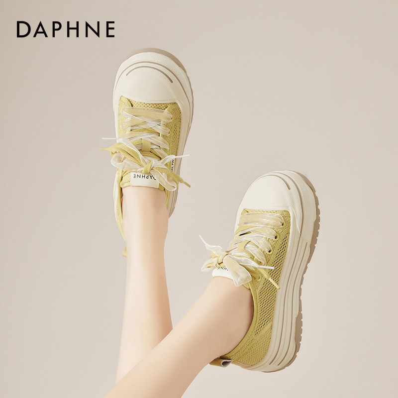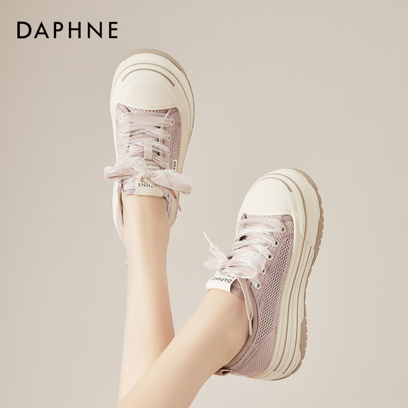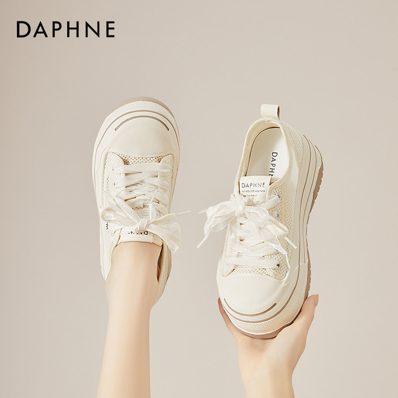 达芙妮厚底单网面网鞋女2026新款夏季透气增高软底小白鞋松糕板鞋