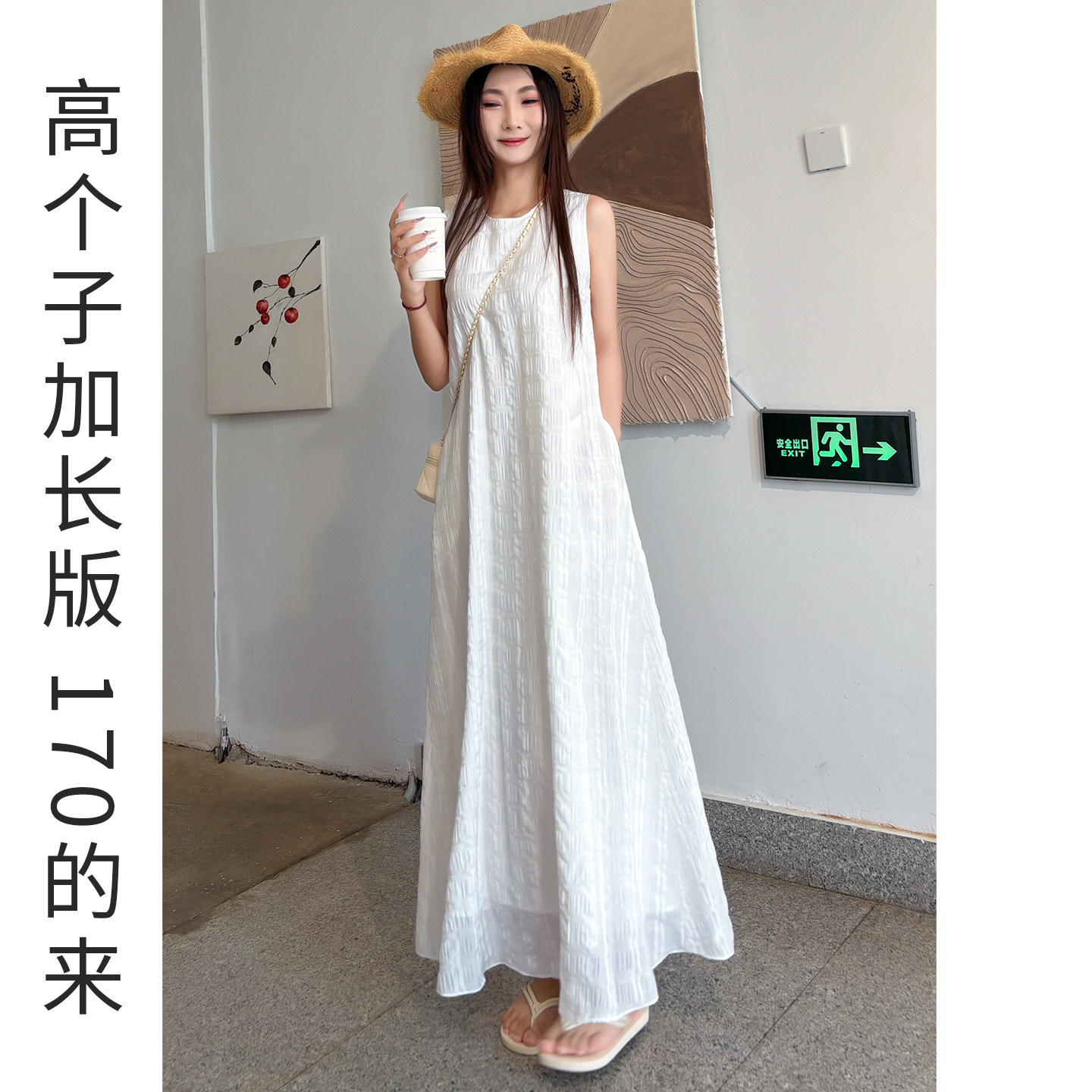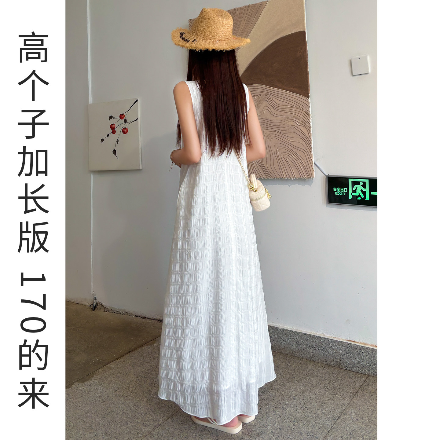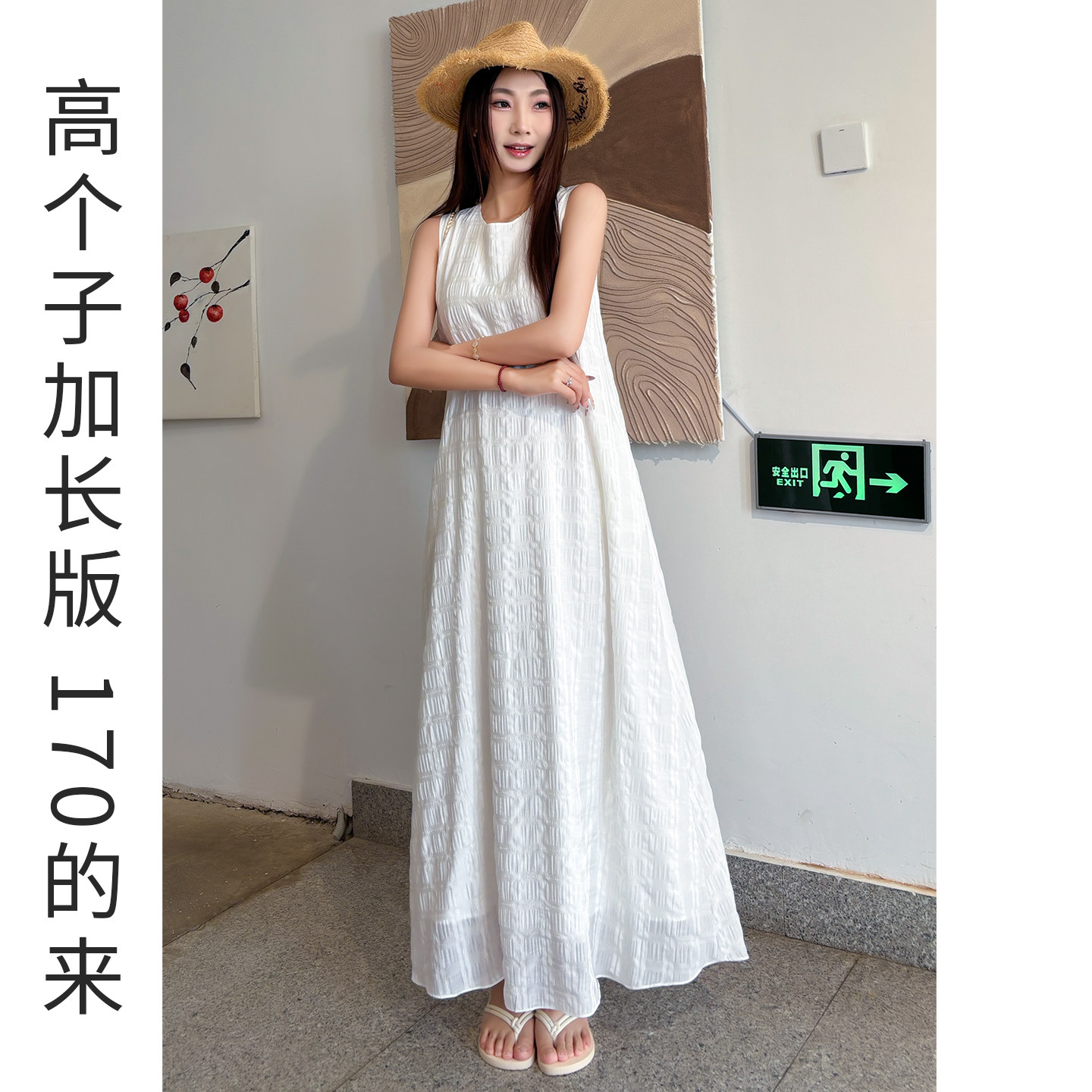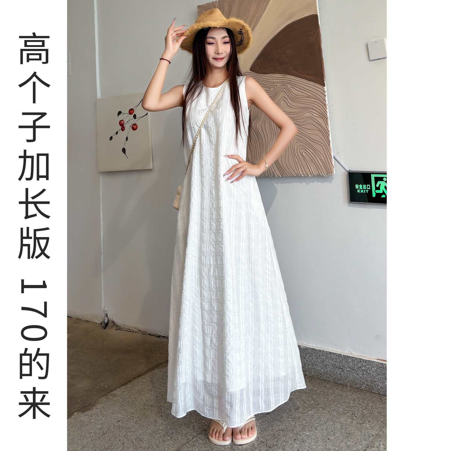 巨好看的白色连衣裙女夏高个子加长款轻奢高级感无袖背心长裙2026