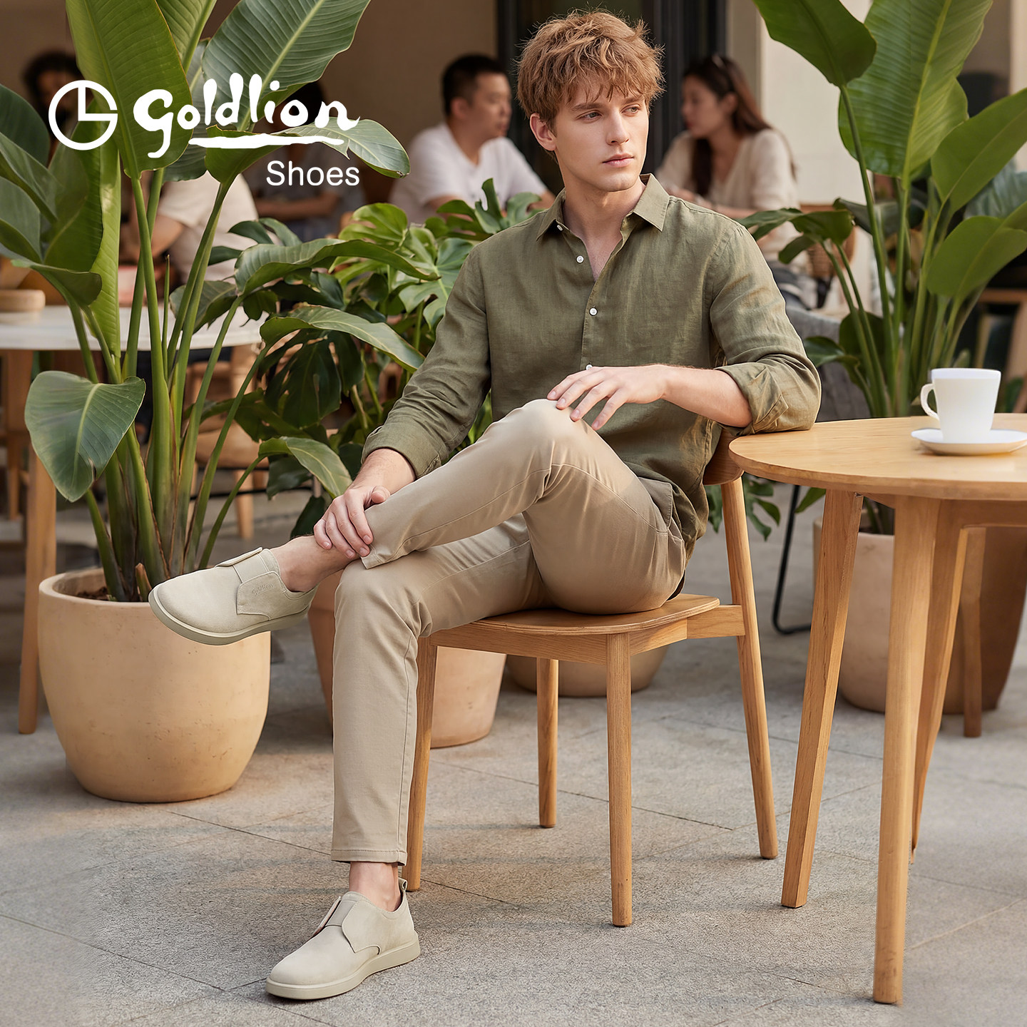 Goldlion男鞋2026春夏季新款男士真皮鞋老钱风一脚蹬舒适休闲皮鞋