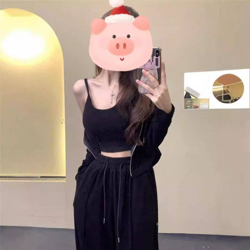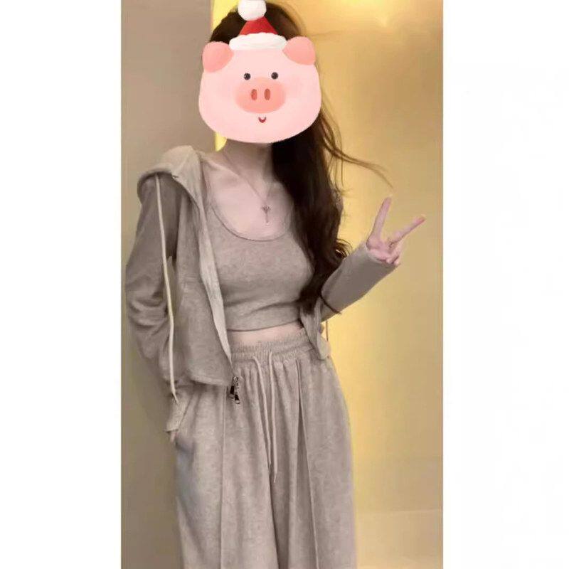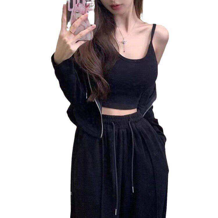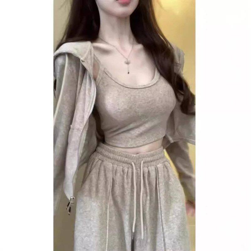茶系时尚秋季搭红女网三件套套装一整套穿小个子显高辣妹休闲运动
