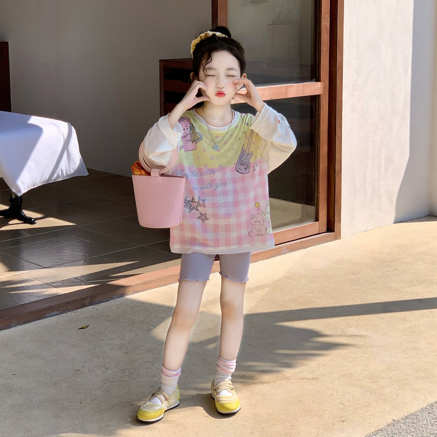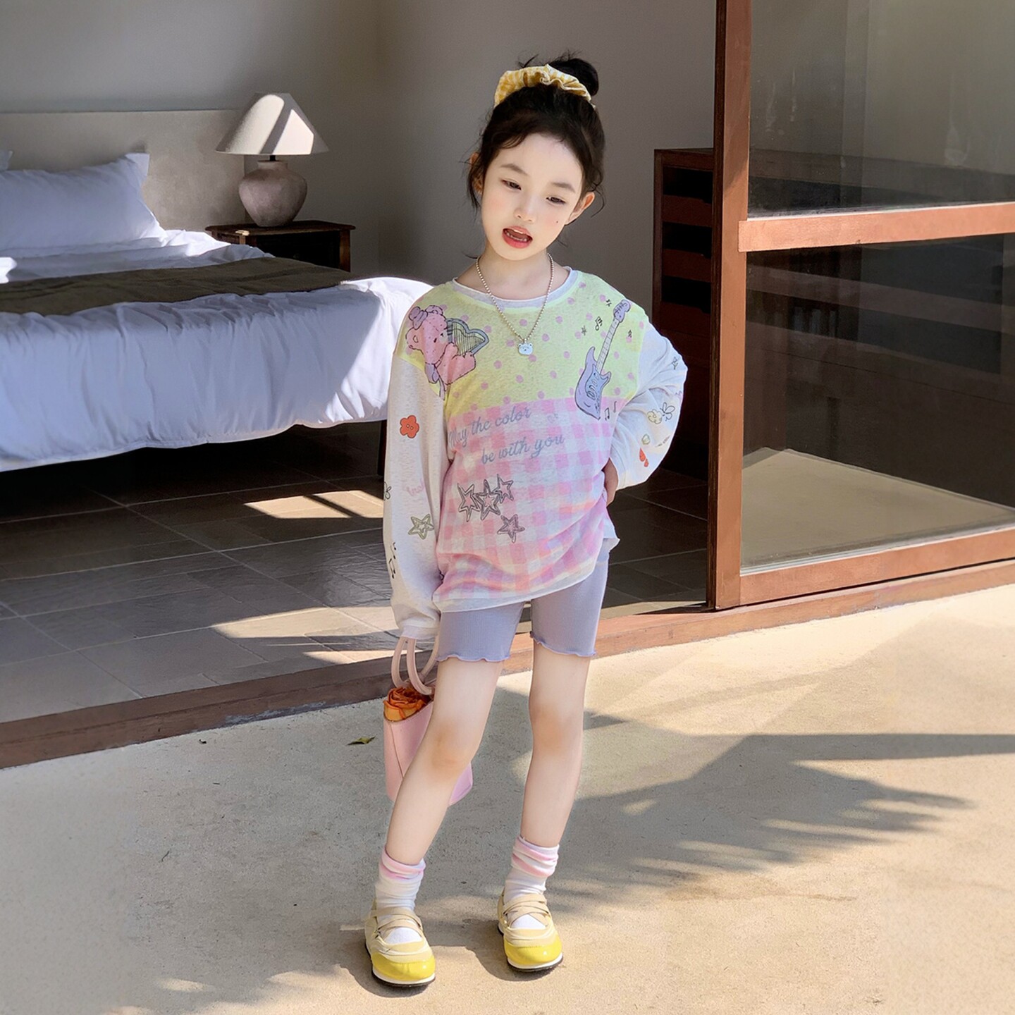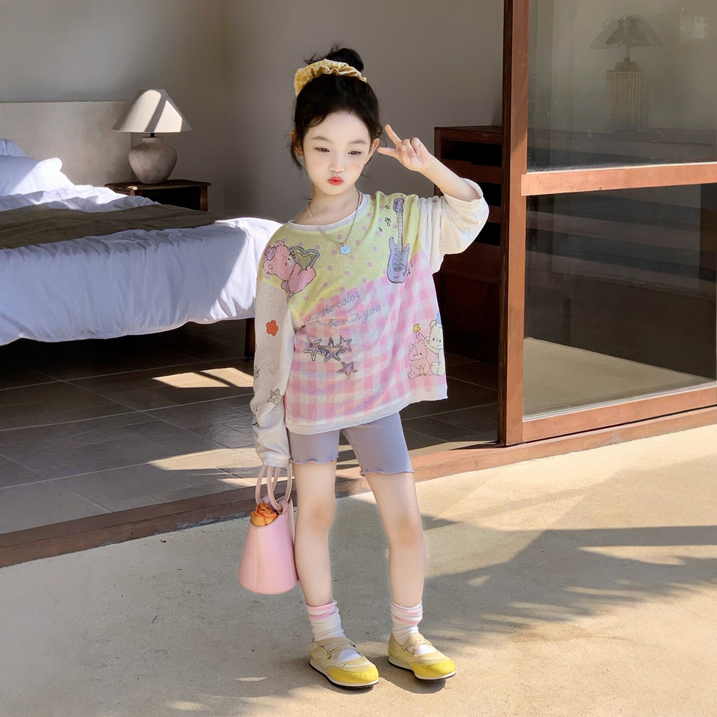 女童套装2026夏季新款儿童卡通防晒长袖上衣女宝宝打底短裤两件套