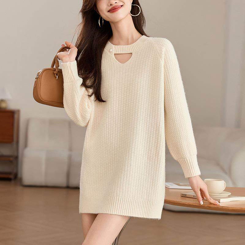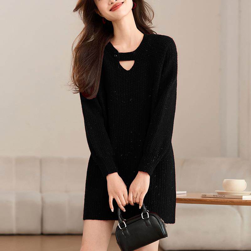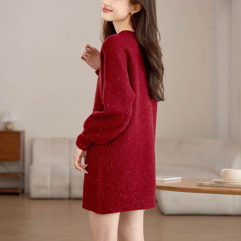 高级感红色毛衣裙女士中长款秋冬2024新款小个子遮屁股加厚打底衫