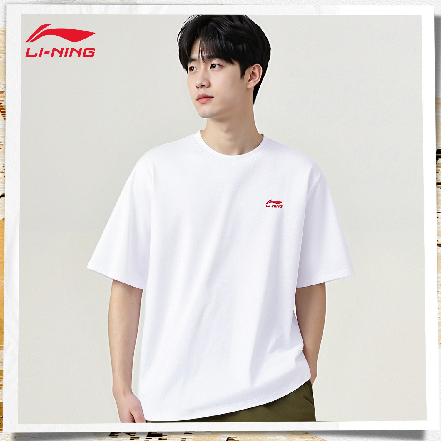 李宁短袖T恤男款纯棉亲肤透气夏季款宽松休闲青少年圆领运动体恤