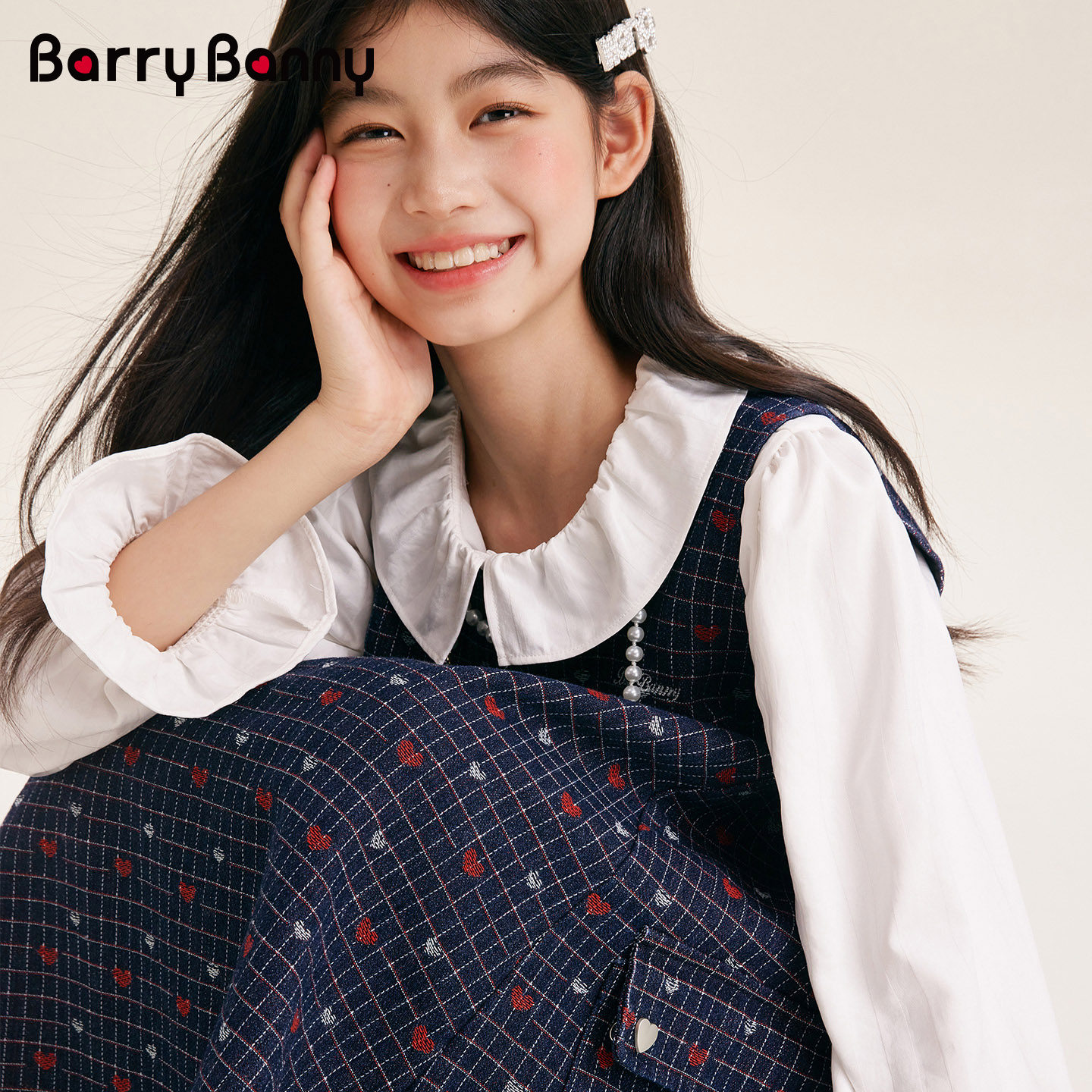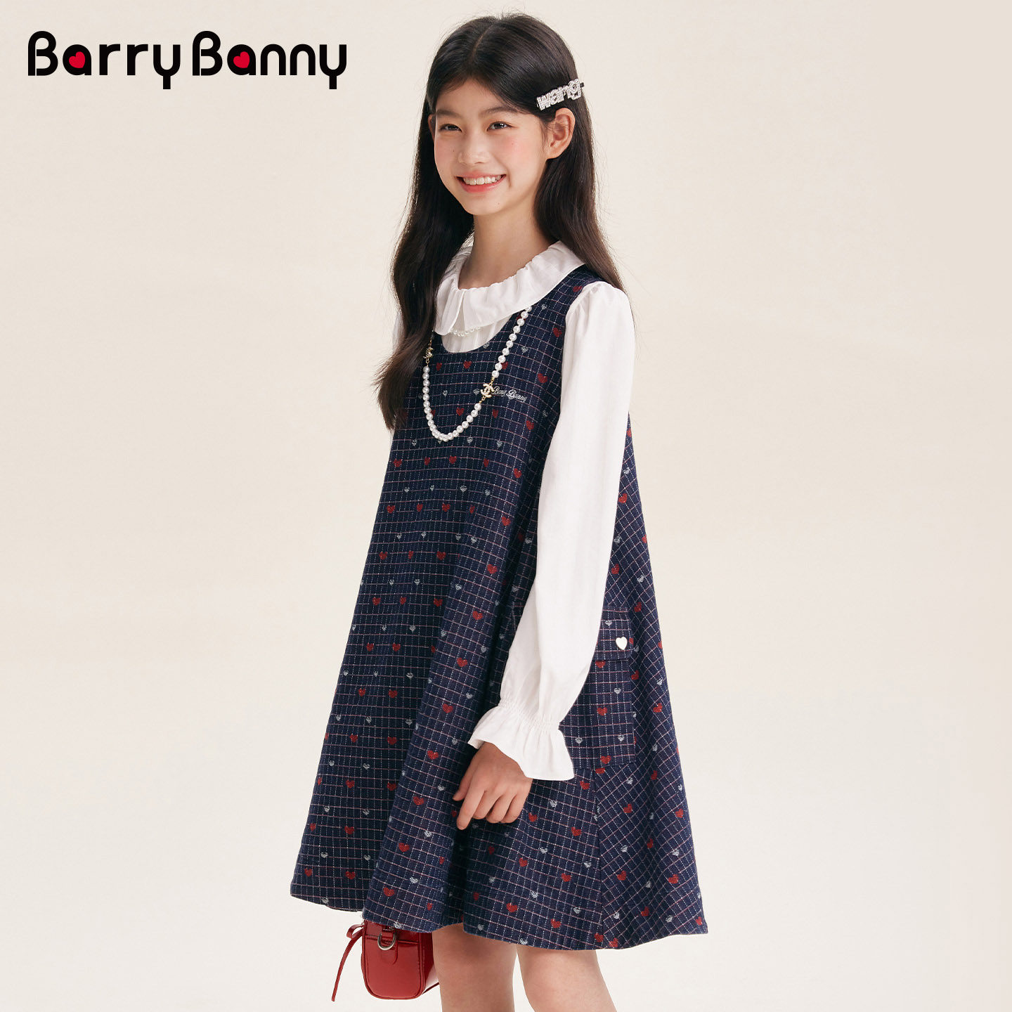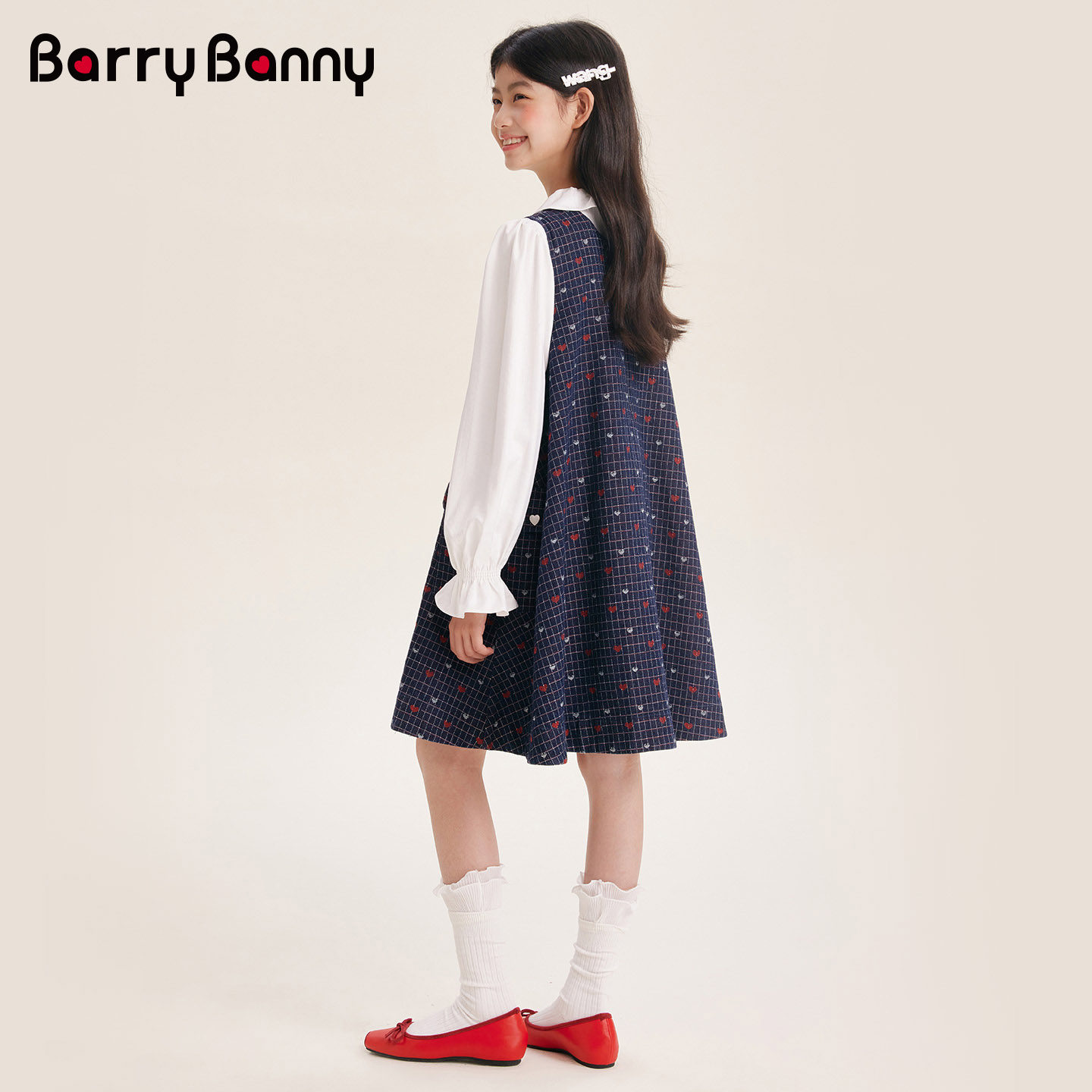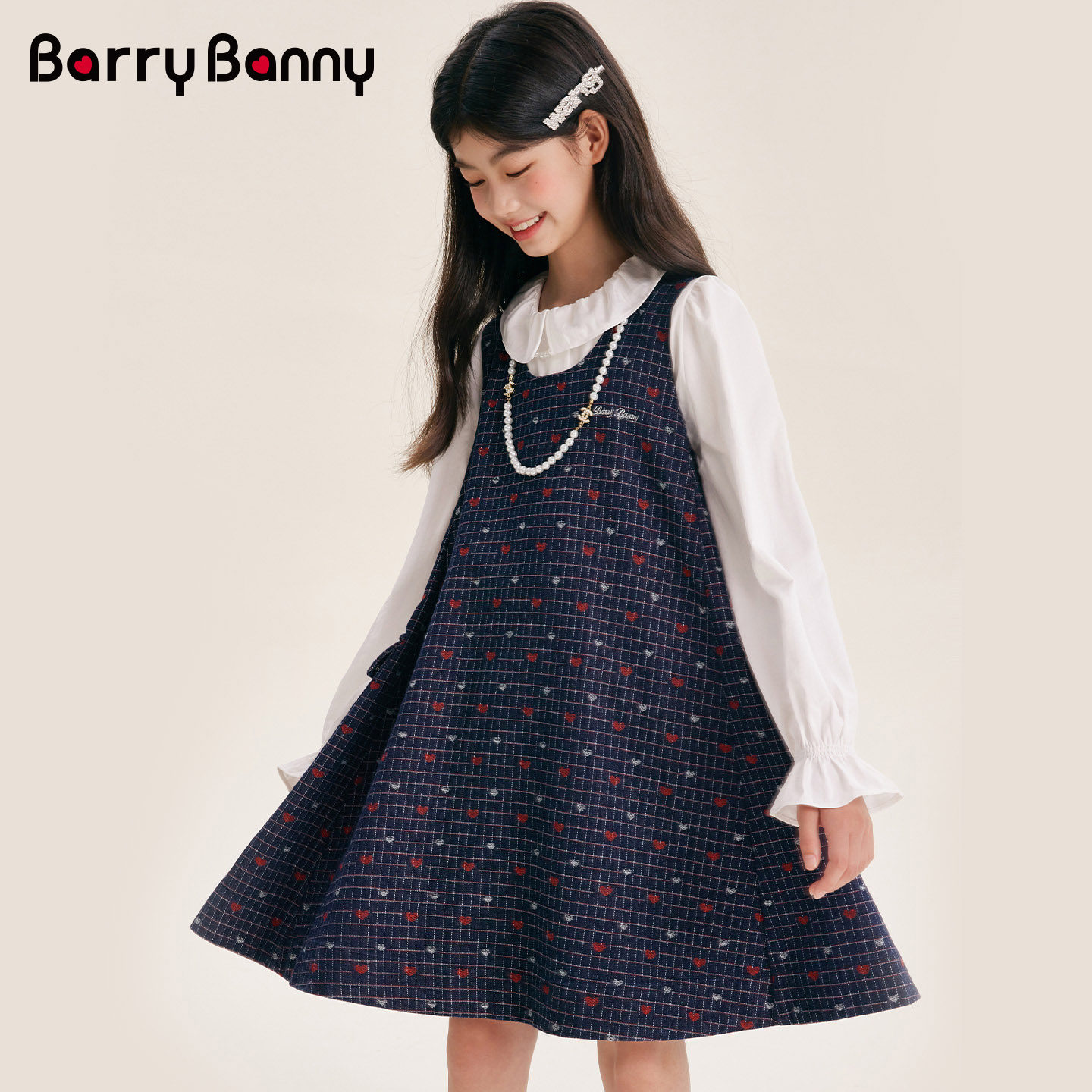 BarryBanny女童爱心格子连衣裙2026春季新款中大童女孩无袖公主裙