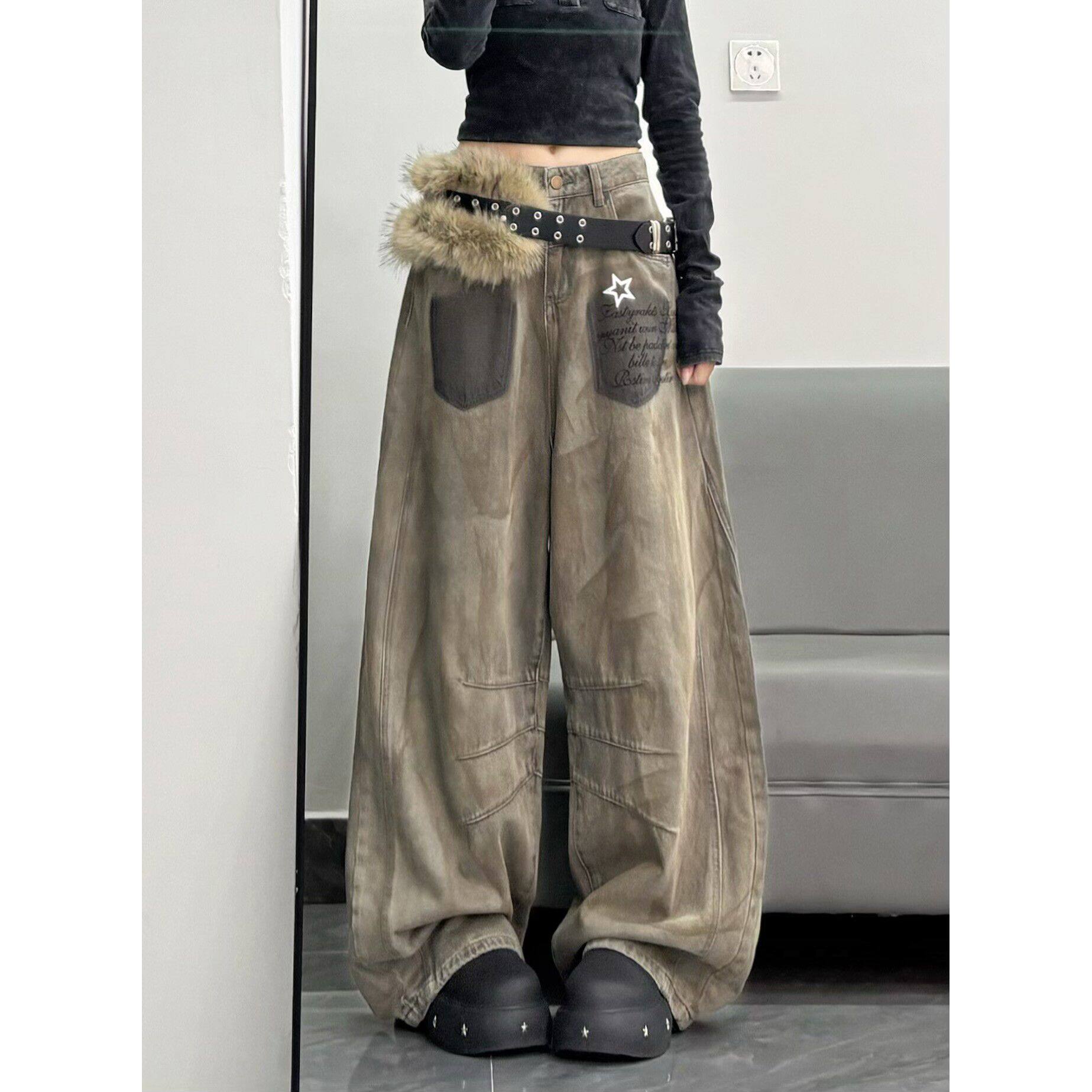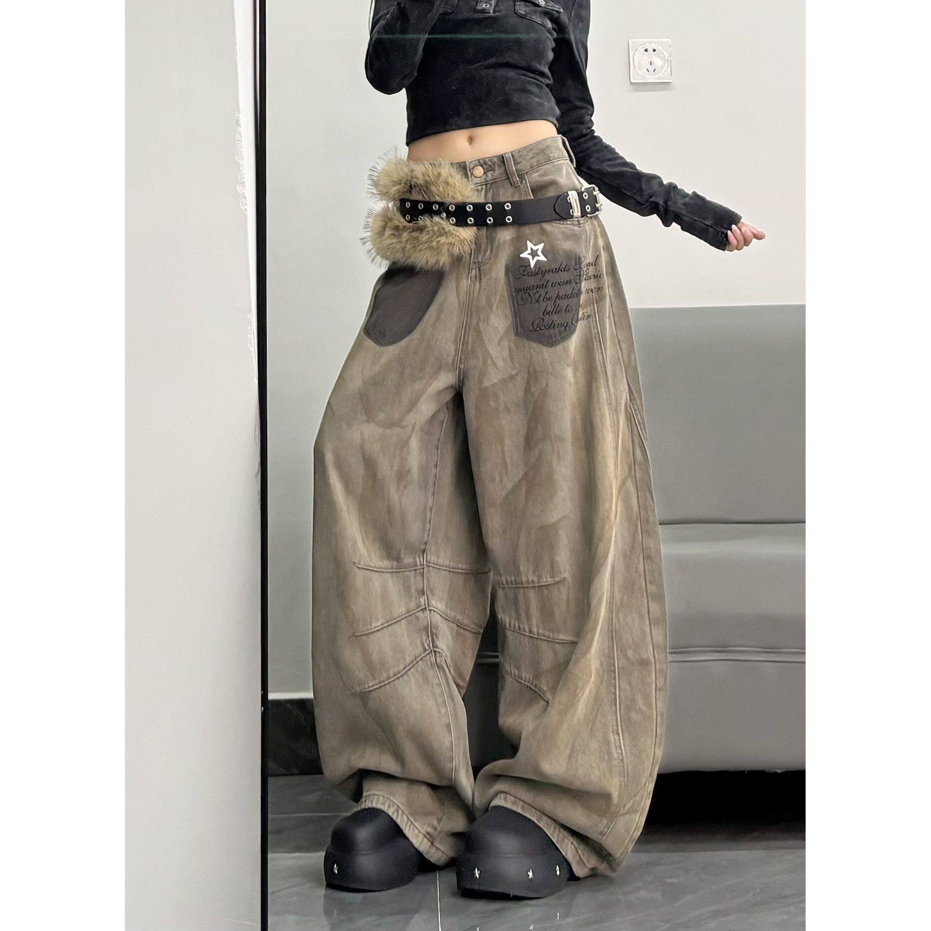 小个子嘻哈牛仔裤子女款2025秋季新款高腰显瘦宽松bf慵懒风阔腿裤