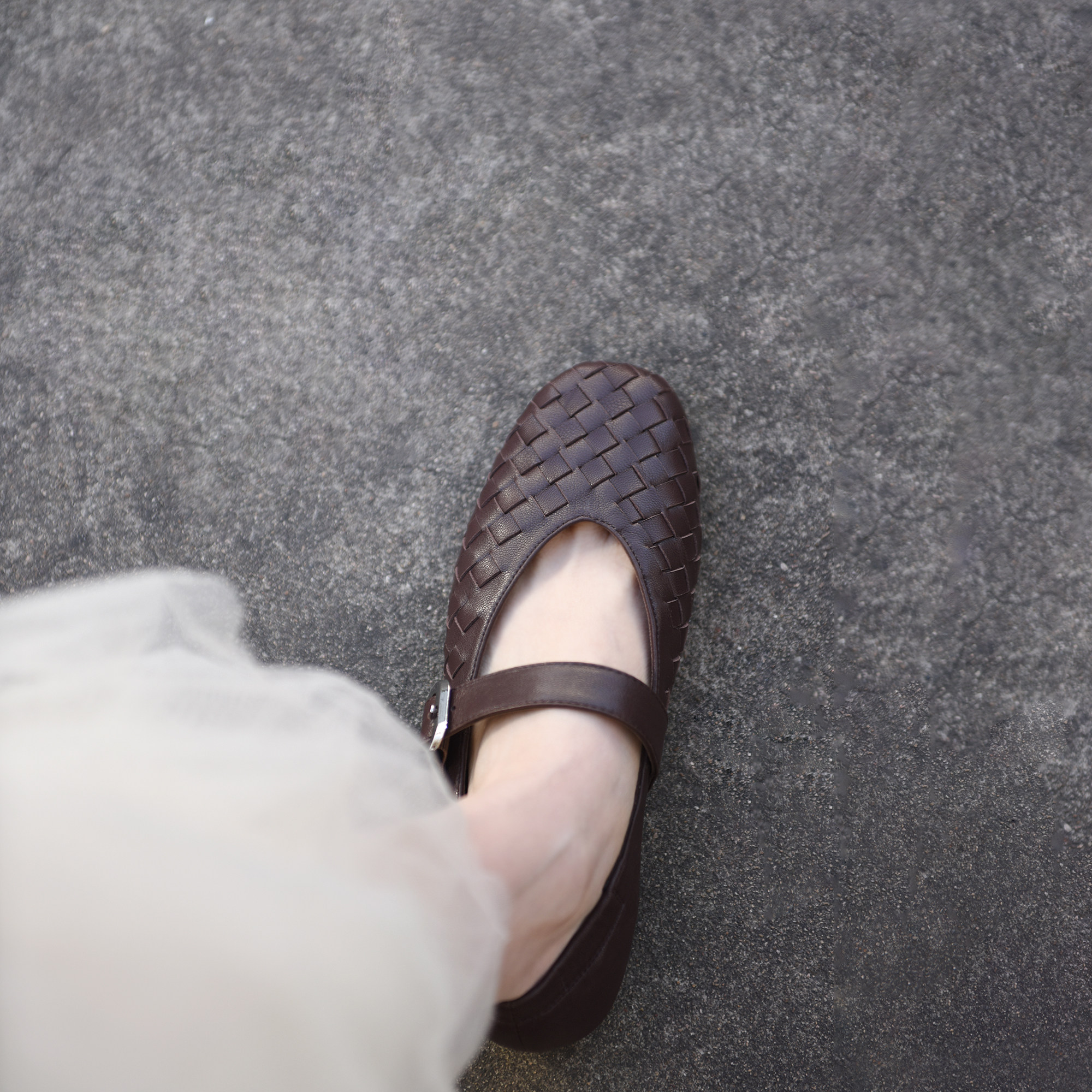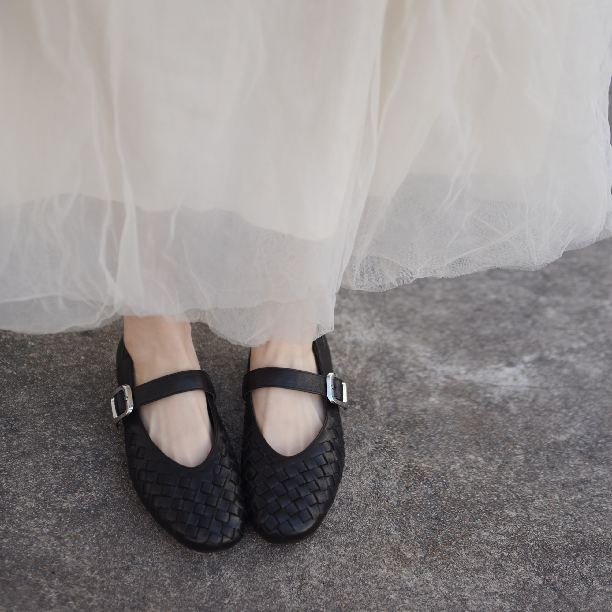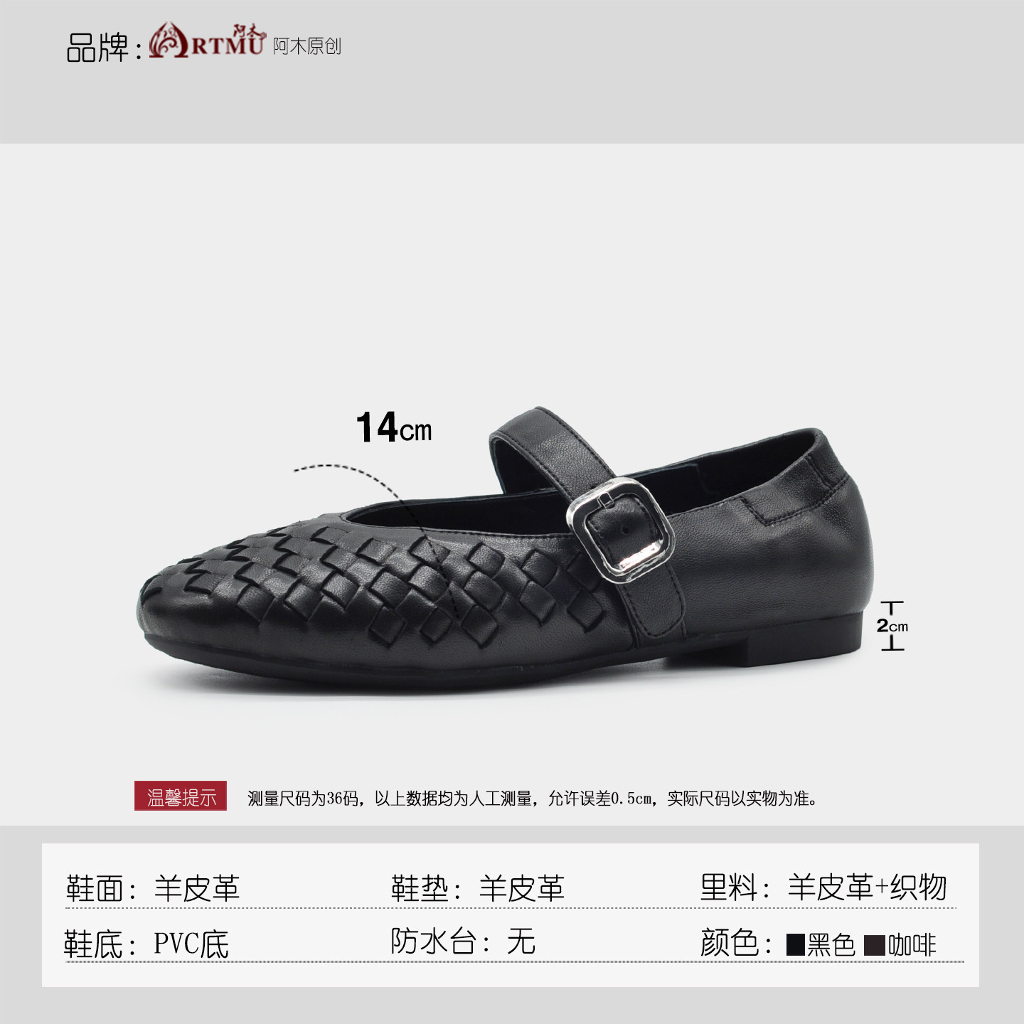Artmu阿木原创真皮编织玛丽珍女鞋平底单鞋黑色小皮鞋2026新款