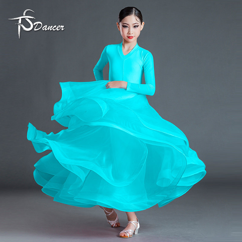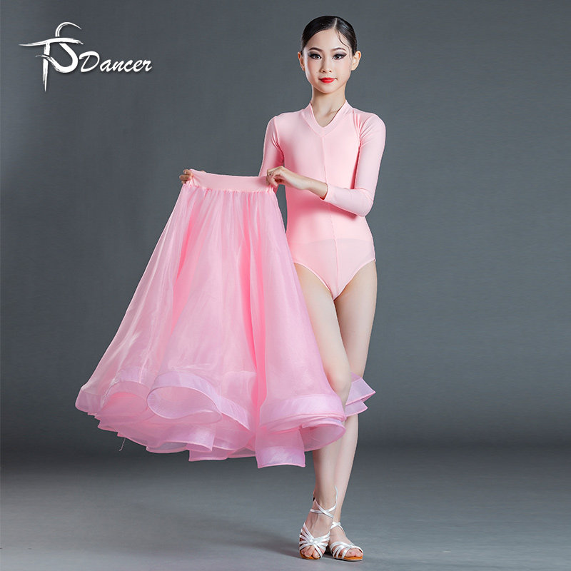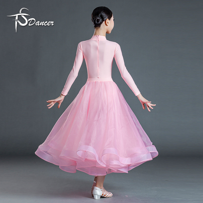 新款拉丁舞服女童表演服粉色国标舞比赛服大摆演出服长袖摩登舞裙