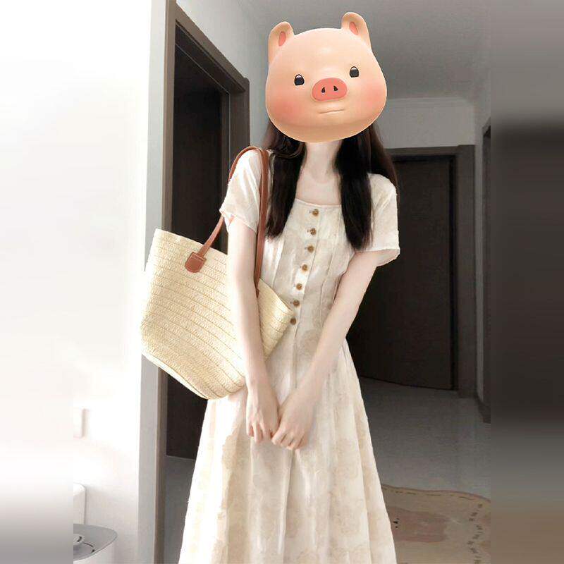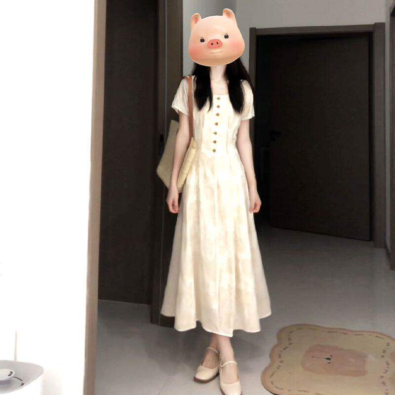 小个子法式气质方领短袖连衣裙子2026夏季新款女大方得体长裙早春