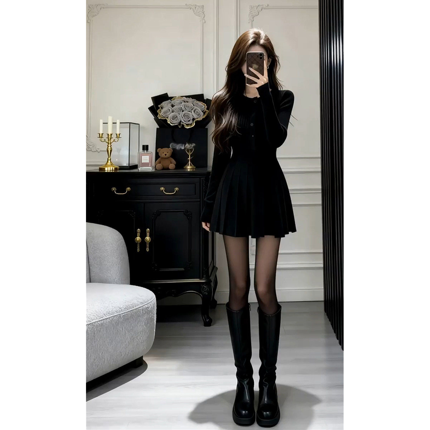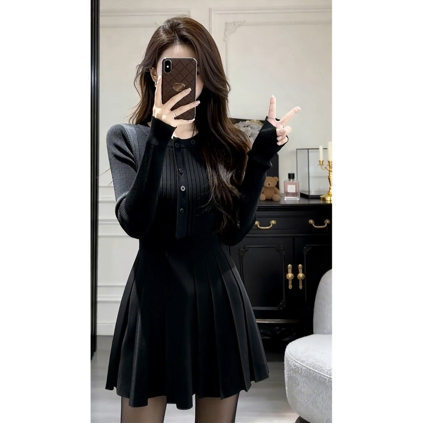 早春小个子黑色法式针织连衣裙子女冬季2026新款气质收腰绝美短裙