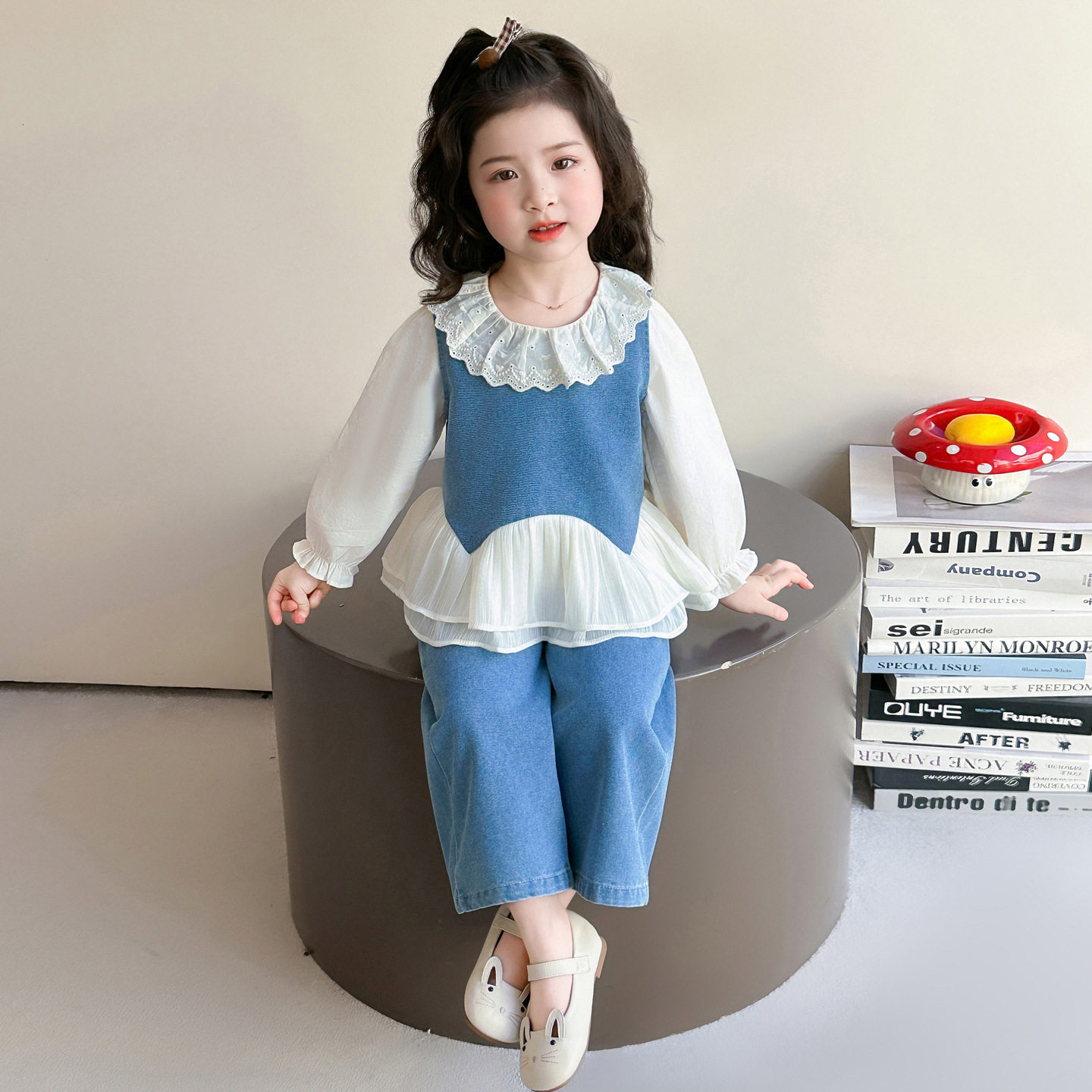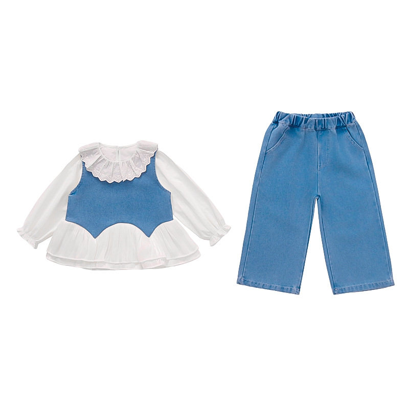 女童韩系高级感穿搭套装春装2026新款洋气儿童牛仔马甲春秋三件套