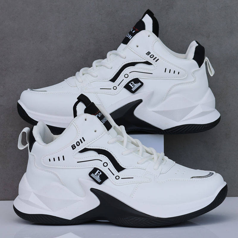 男鞋子秋季新款防水皮面高帮运动鞋学生防臭防滑篮球鞋软底休闲鞋