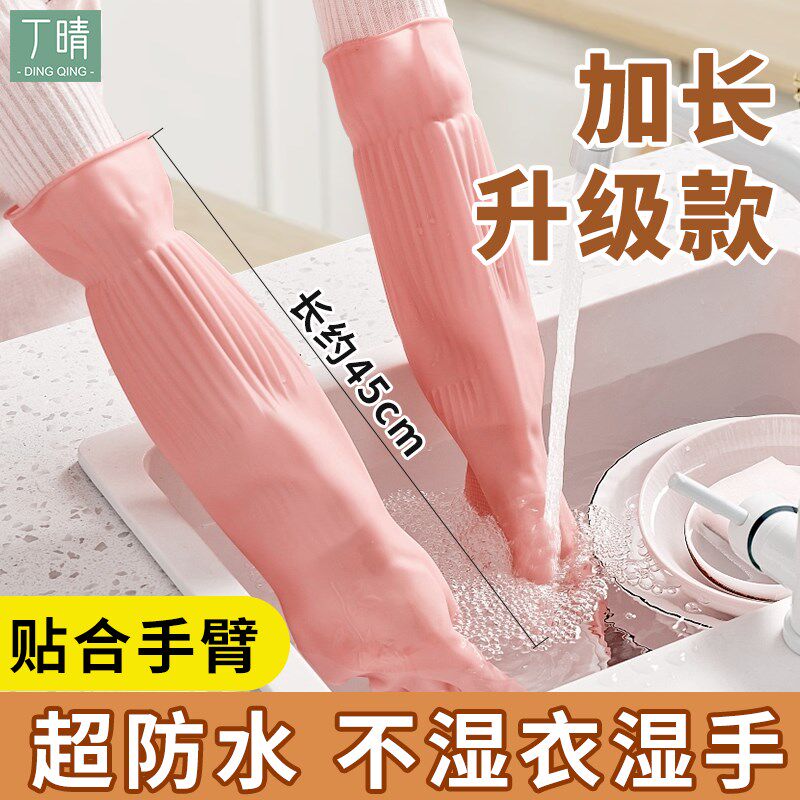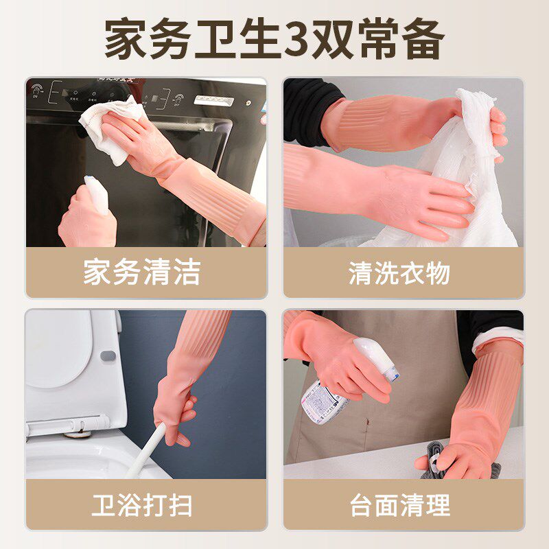 家用橡胶手套洗碗专用女家务乳胶厨房耐用型加长洗衣胶皮防水干活