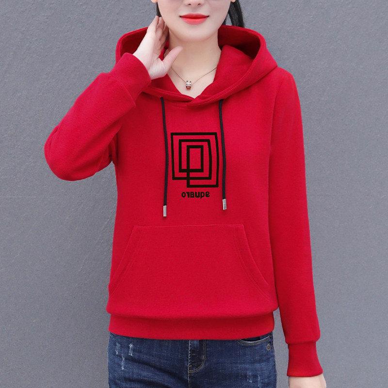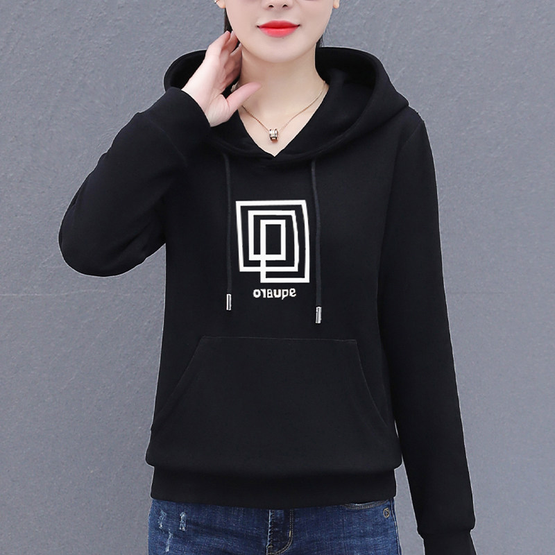 卫衣女春秋薄款圆领连帽春装女士2023年新款印花早春大码女款上衣