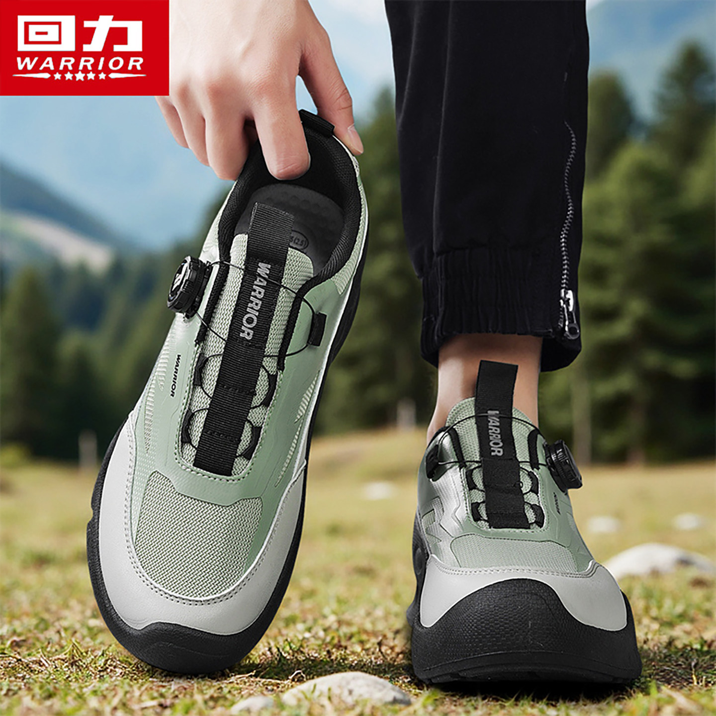 回力男鞋夏季2026新款网面透气运动鞋休闲防滑一脚蹬旋钮跑步鞋男