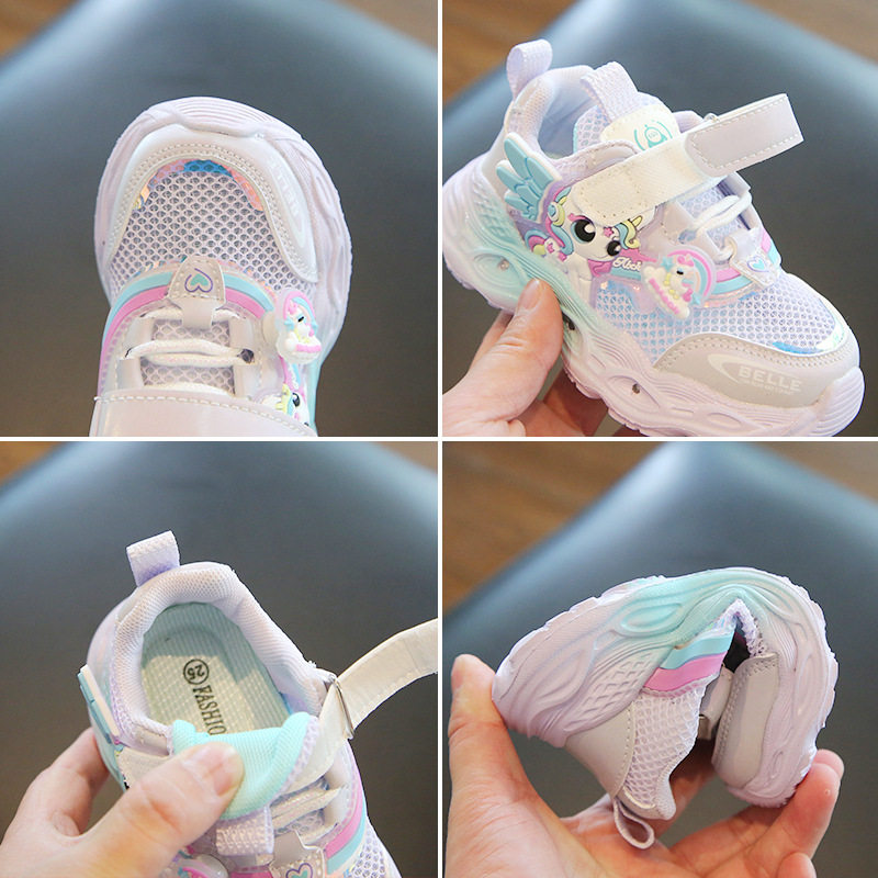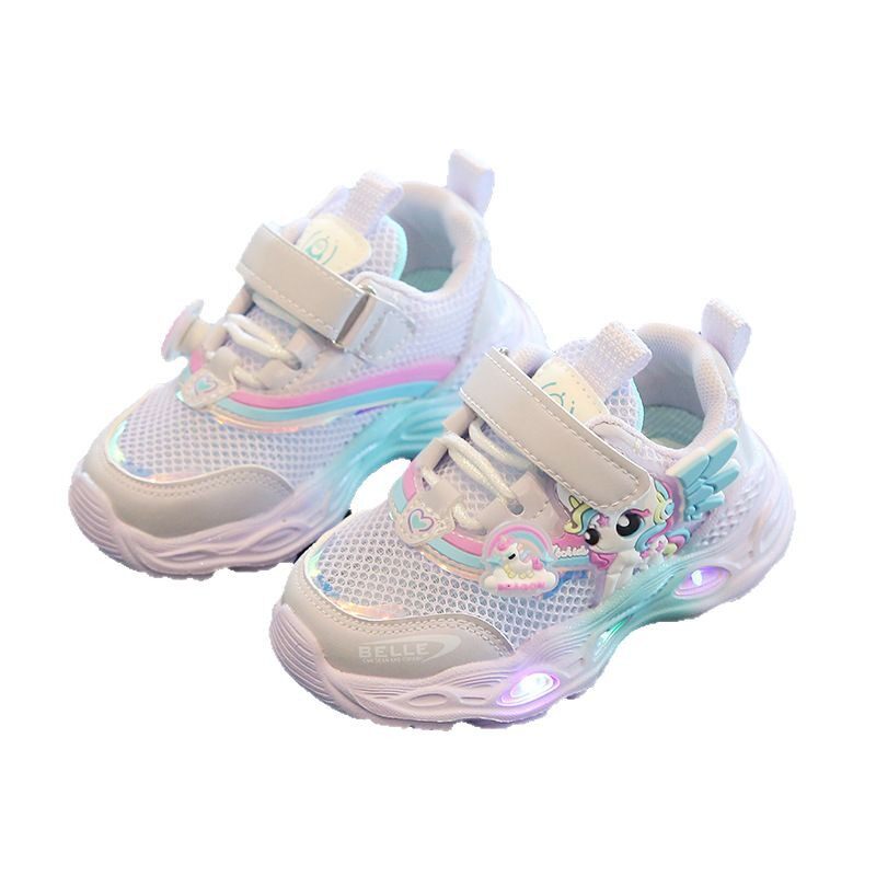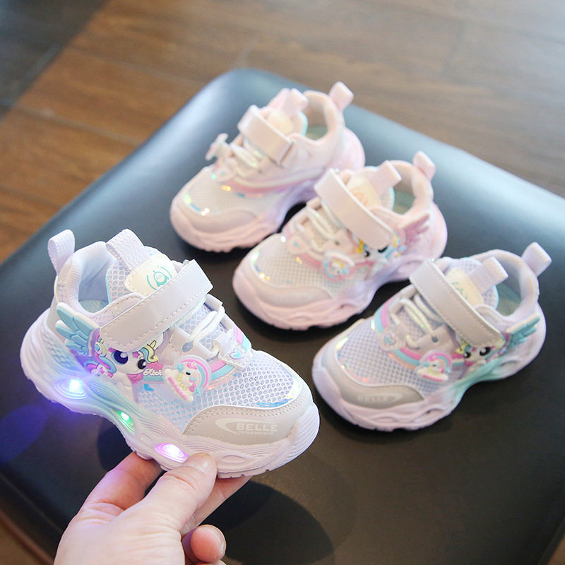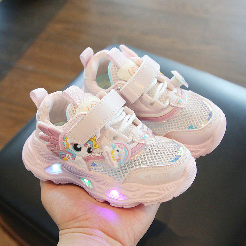 女小童2026新款夏季单网透气运动鞋亮灯幼儿园女宝宝薄款耐脏网鞋