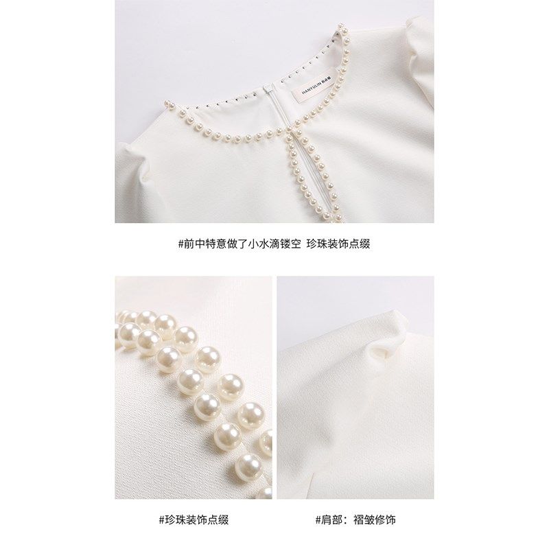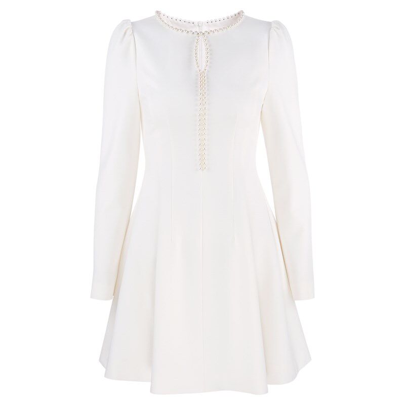 韩语琳 白色长袖收腰连衣裙2025新款女春季法式气质短款a字裙裙子