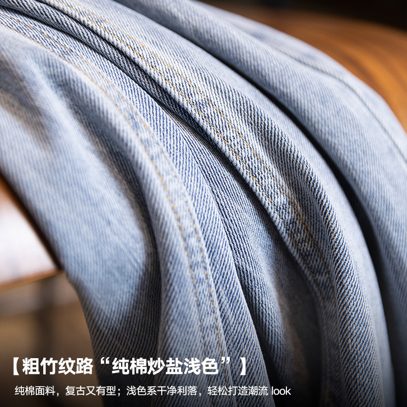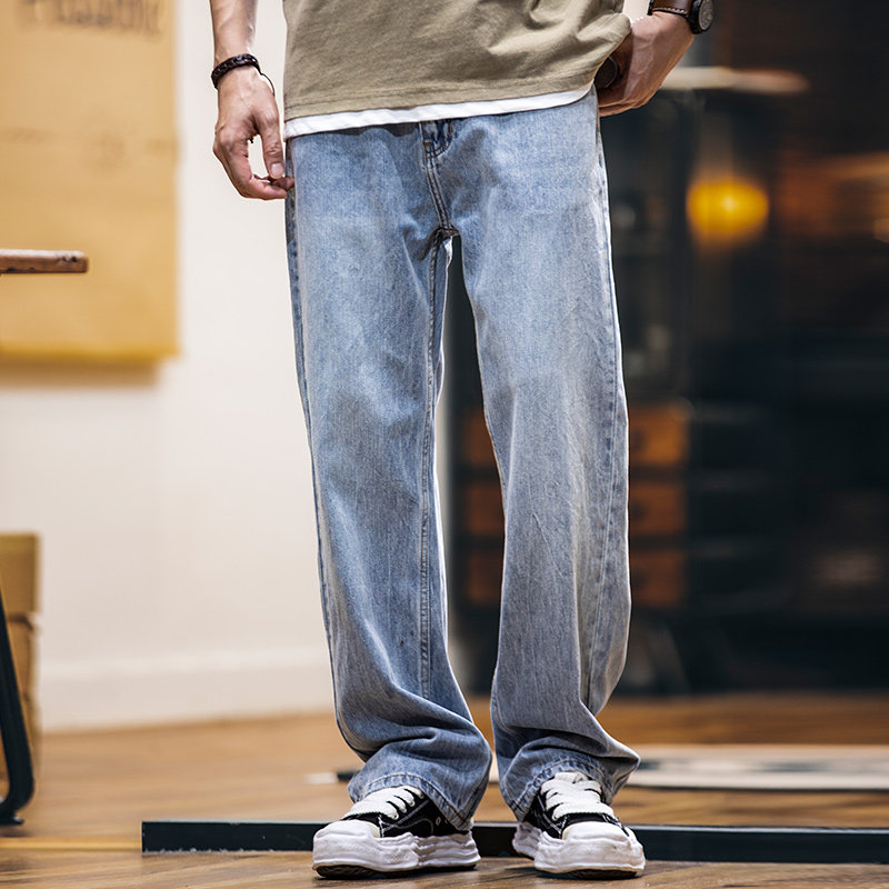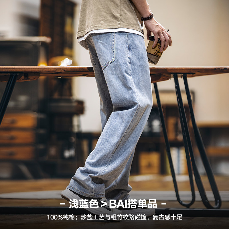 美式浅蓝色复古牛仔裤男士春夏2026新款纯棉水洗宽松直筒裤子男款