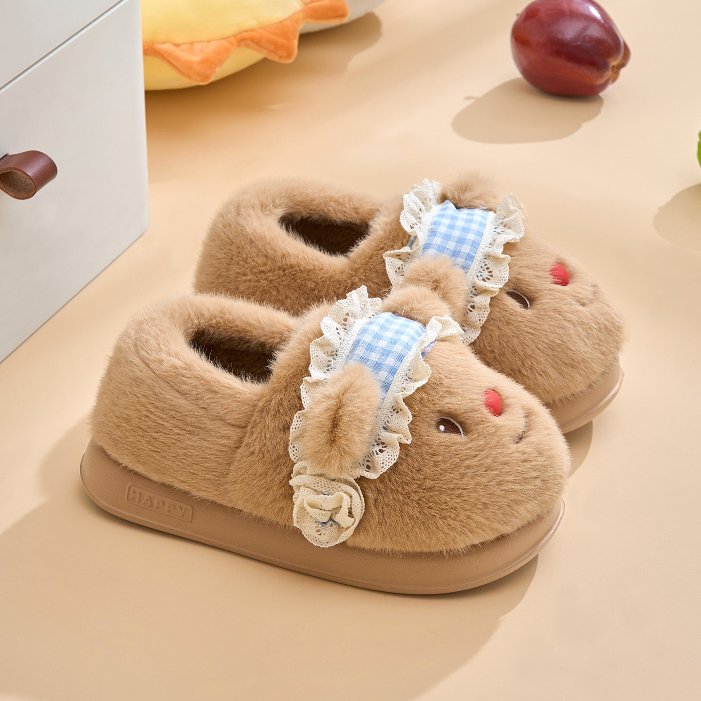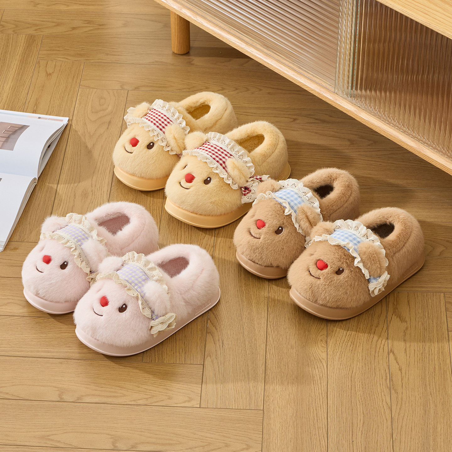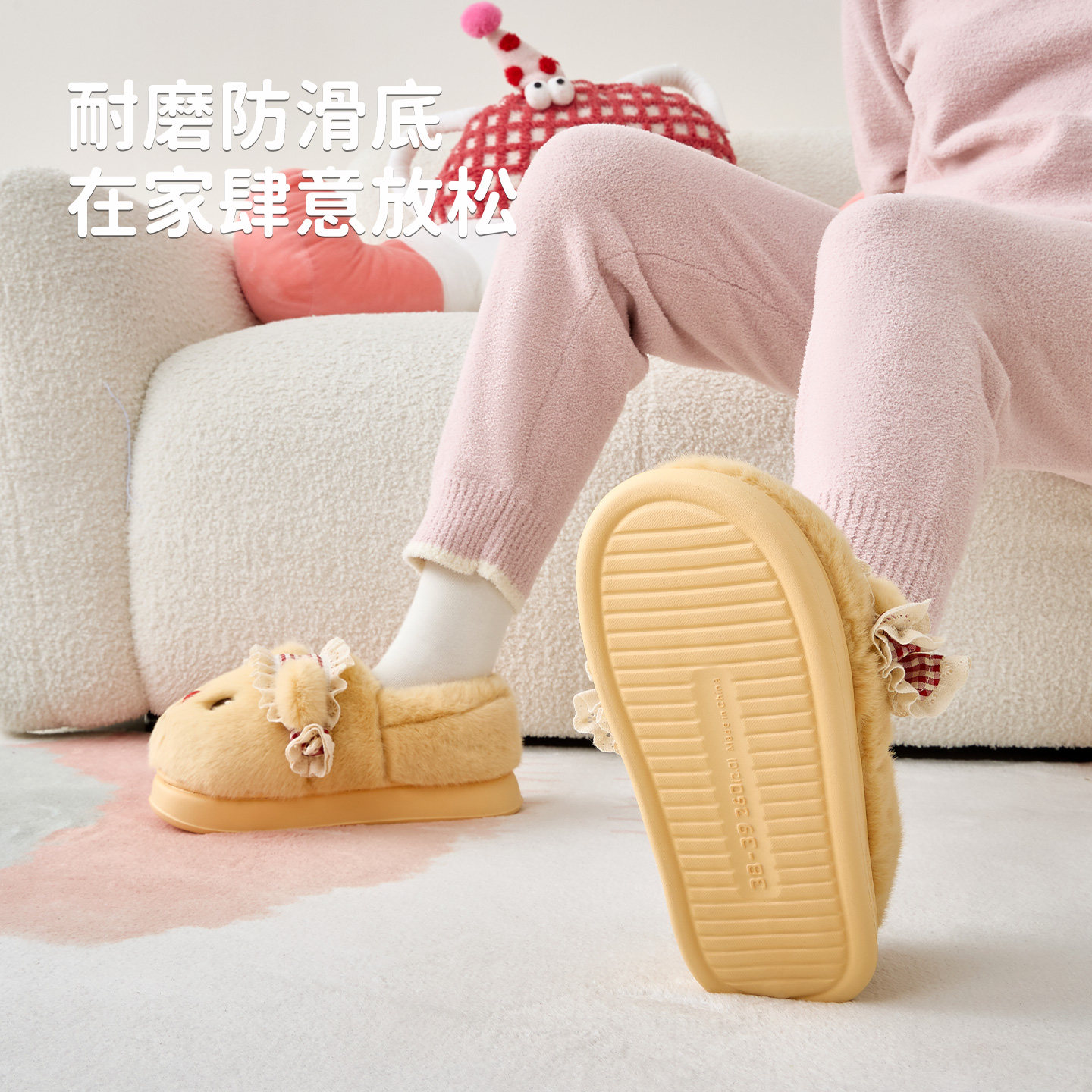 可爱卡通棉拖鞋女款冬季外穿加绒厚底保暖棉鞋防滑包跟月子鞋网红