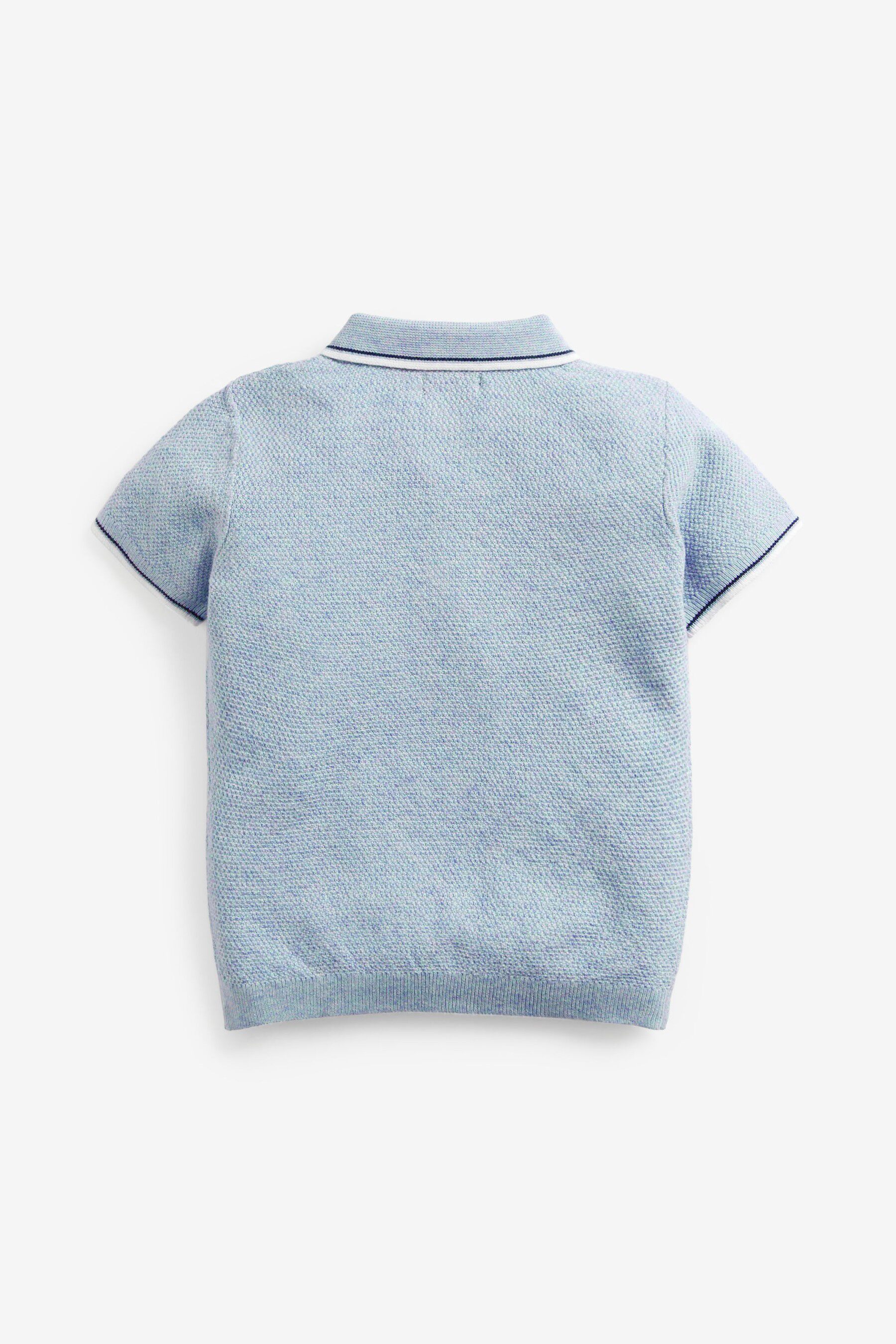 现货英国NEXT正品童装夏小男童蓝色针织织纹纯棉短袖polo衬衫