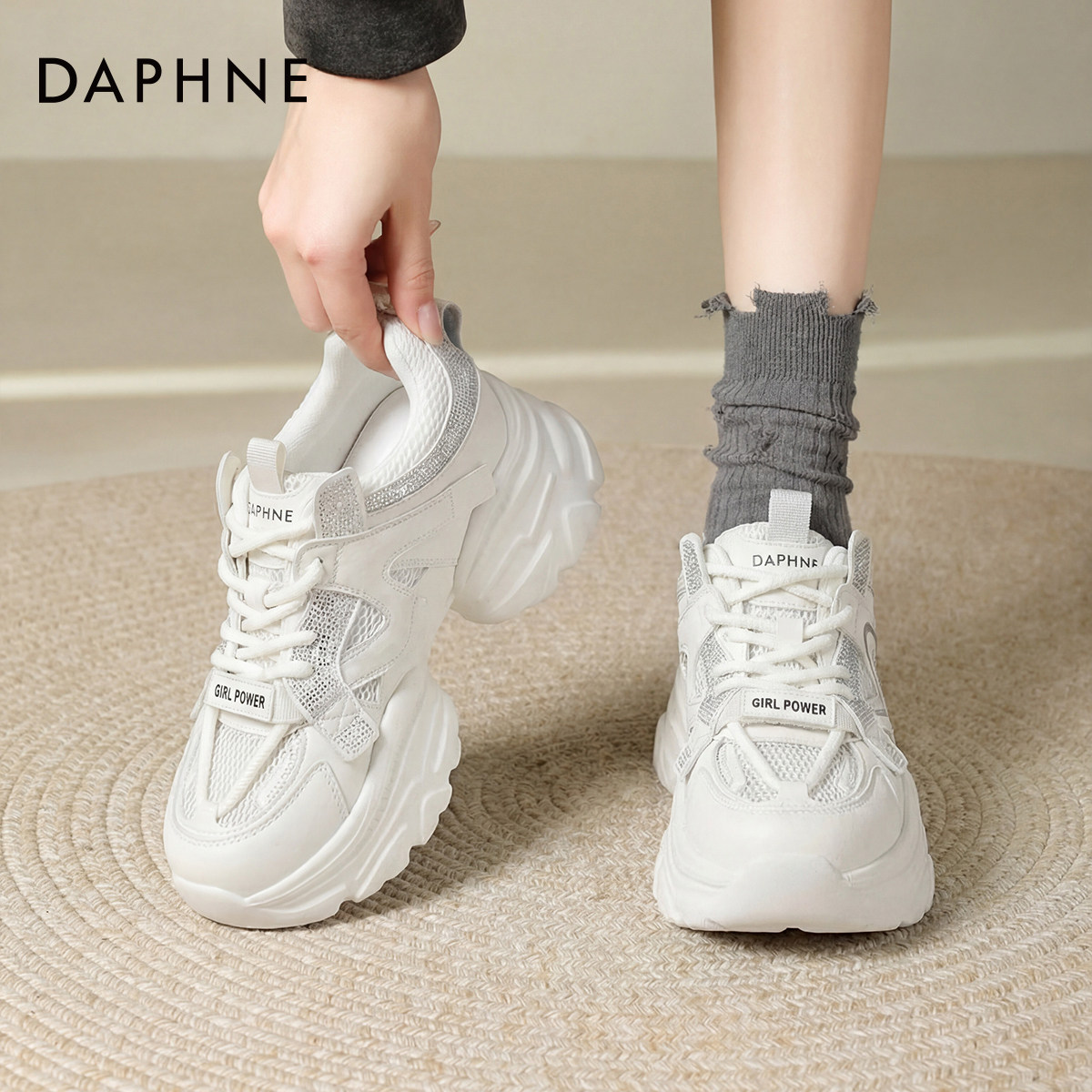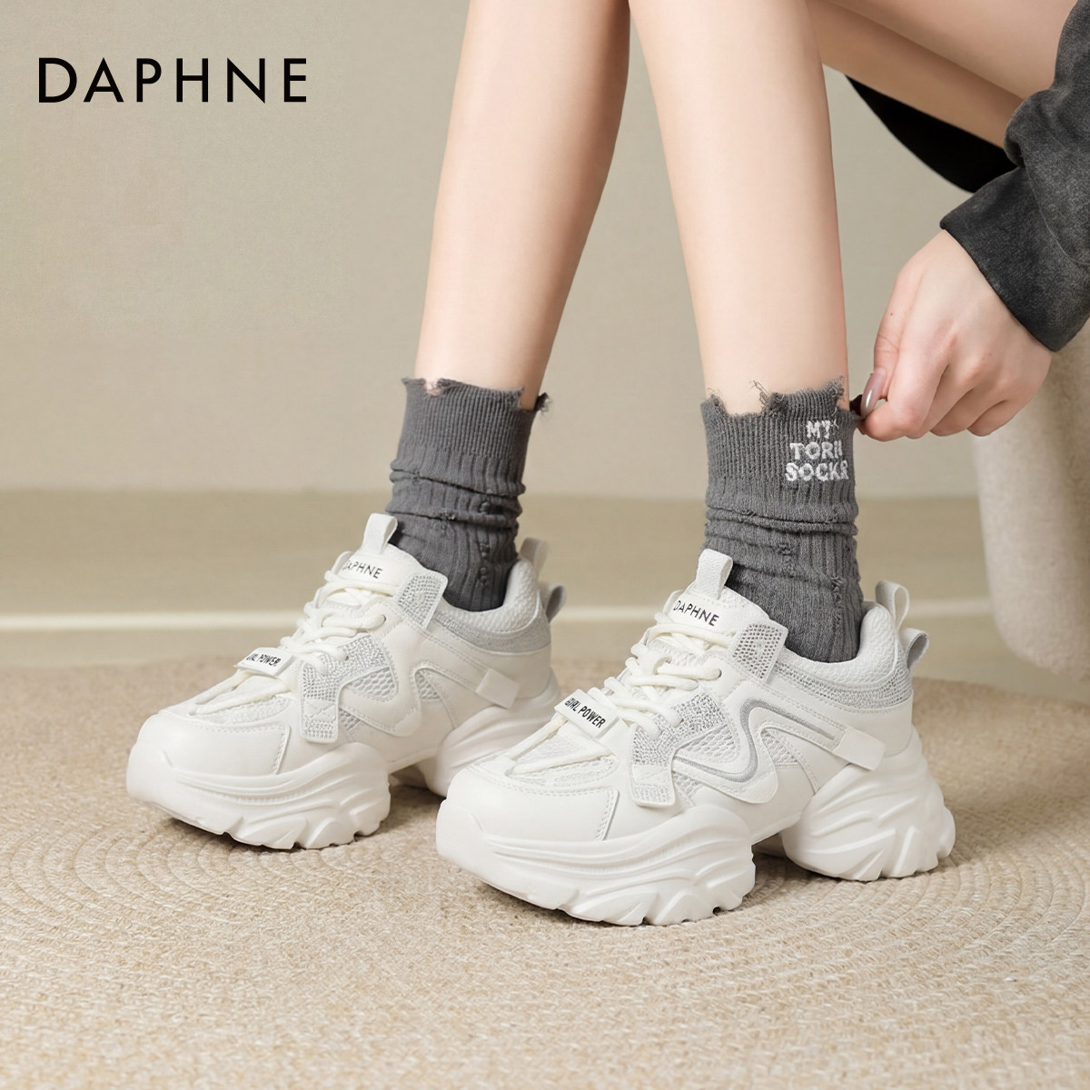 达芙妮厚底老爹鞋女2026新款春夏季白色增高运动鞋小白鞋通勤女鞋