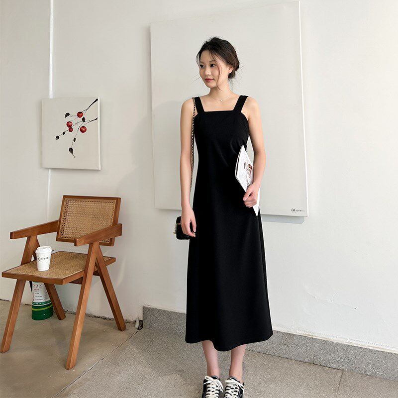 法式黑色吊带连衣裙女质感高级长款气质春夏背心内搭收腰显瘦长裙