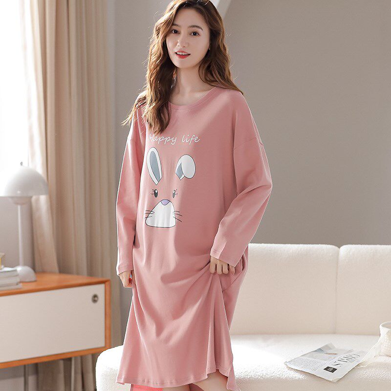 长袖睡裙女春秋天棉质宽松大码长款连衣裙胖mm200斤睡衣秋冬款