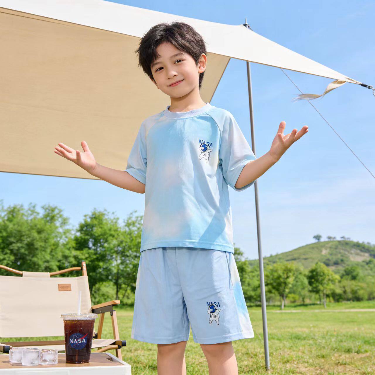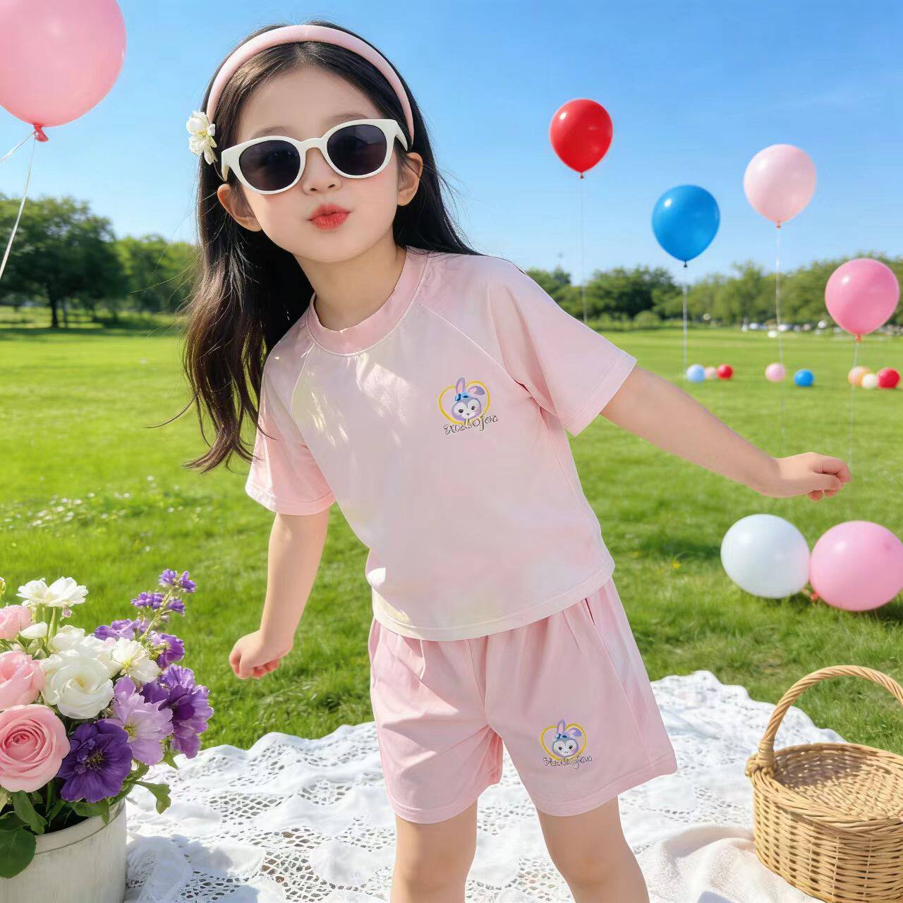 新款儿童冰丝运动套装短袖短裤夏季薄款凉感男童女童速干卡通球服