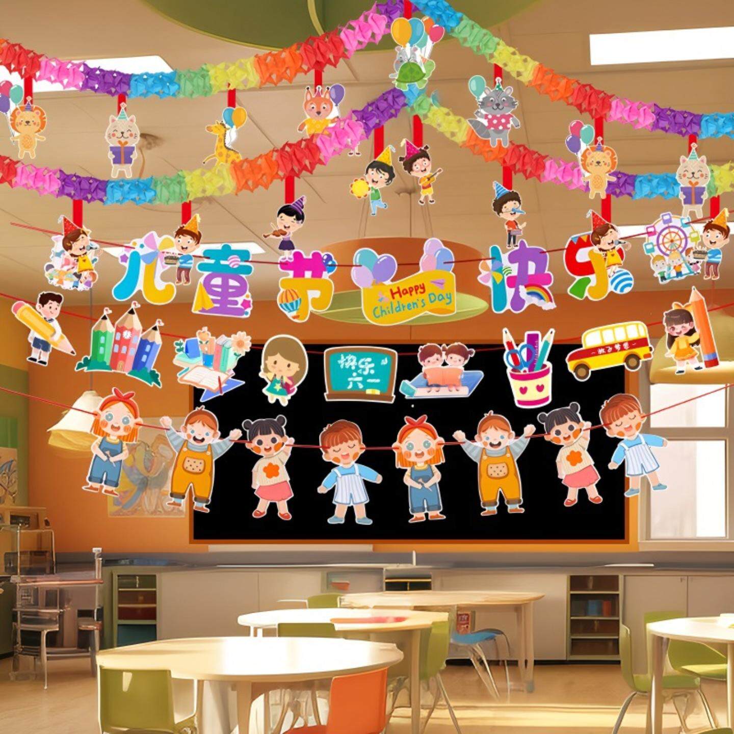 六一儿童节教室布置装饰拉花彩带小学幼儿园61活动场景装扮用品