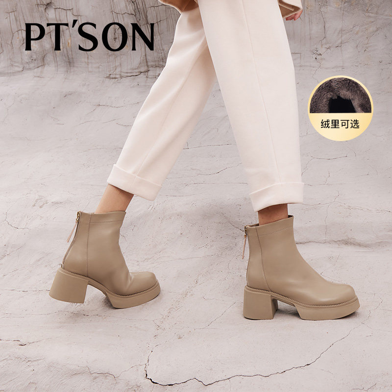 百田森高跟鞋秋冬弹力时装靴真皮新款爆款小个子增高厚底短靴女款