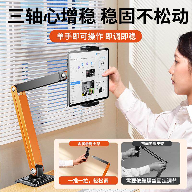 便携屏显示屏专用支架360 度旋转金属机械悬臂支架桌面床头桌夹式固定架手机平板便携屏学习适用于多角度调节