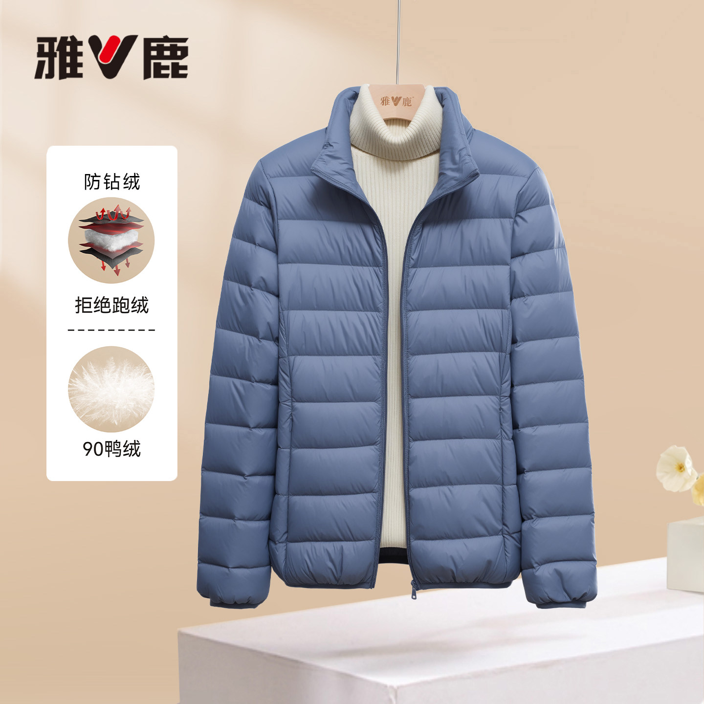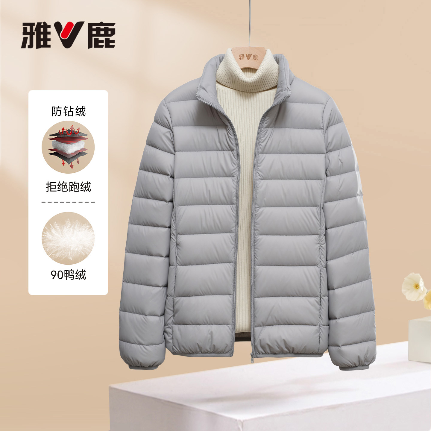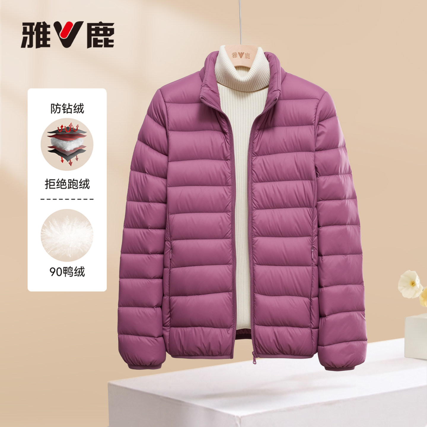 雅鹿官方正品冬季新款羽绒服女款立领轻薄短款修身外套新款鸭绒