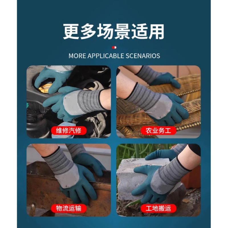 手套工作劳保耐磨防滑加厚劳动乳胶橡胶劳工防护干活工地浸胶防水