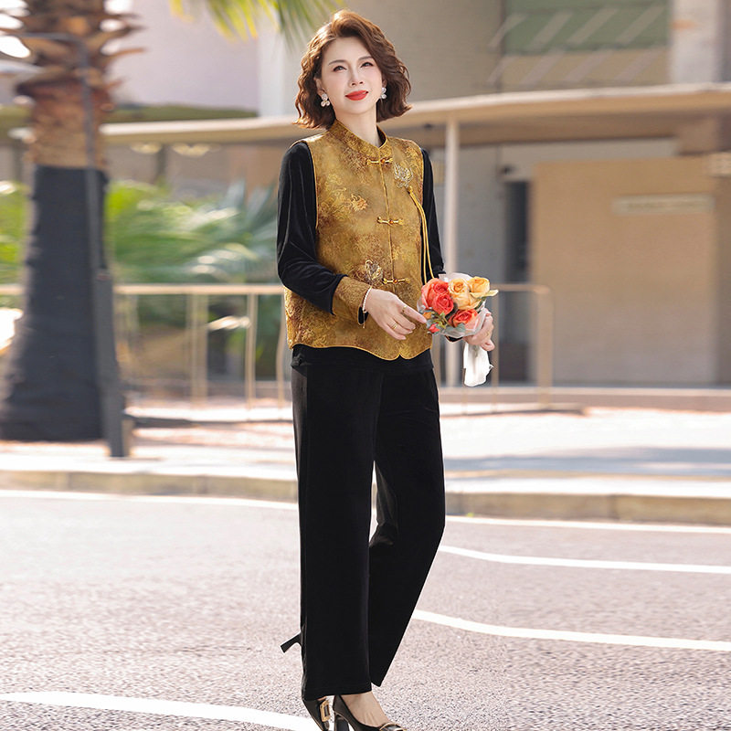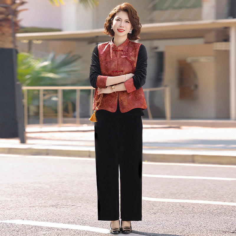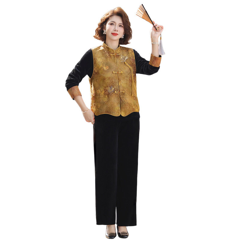 妈妈春装新中式国风三件套2026新款坎肩背心中老年人春秋马夹套装