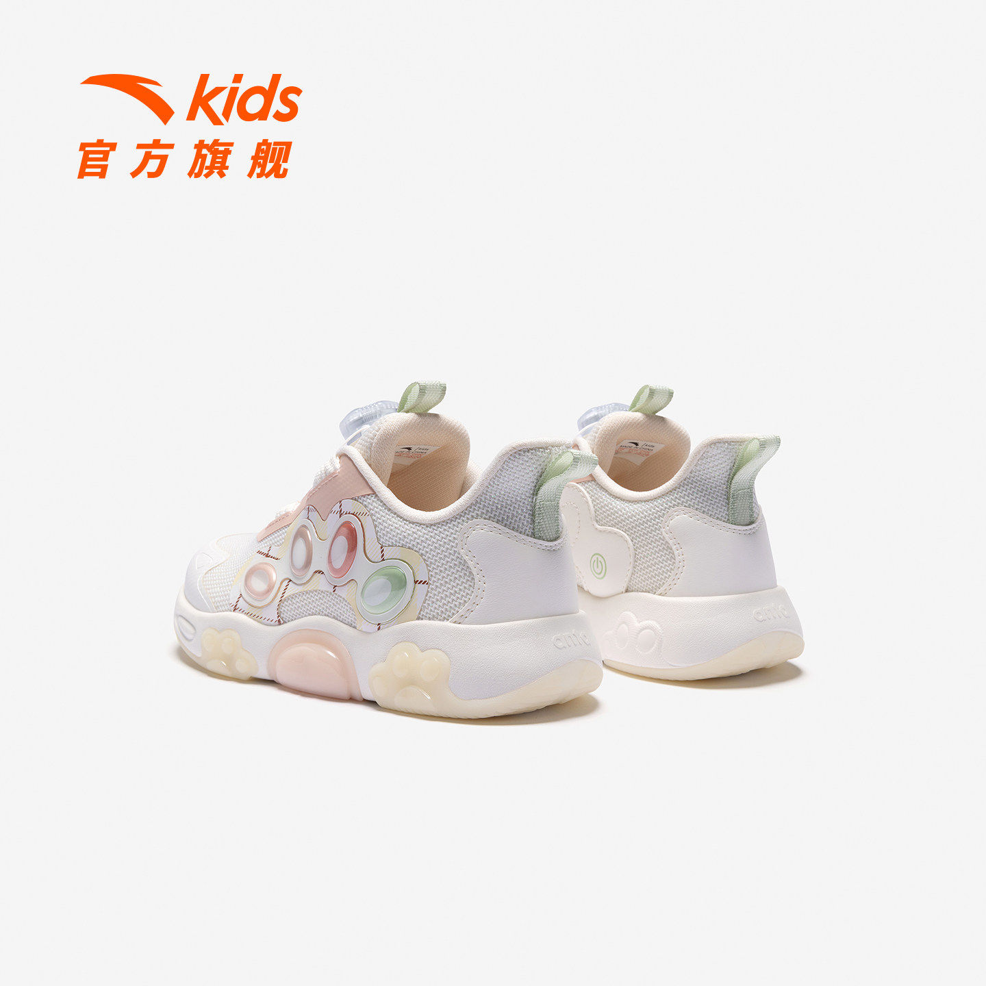 安踏儿童运动鞋女小童鞋2026年春季新款软弹舒适闪灯鞋旋钮童鞋