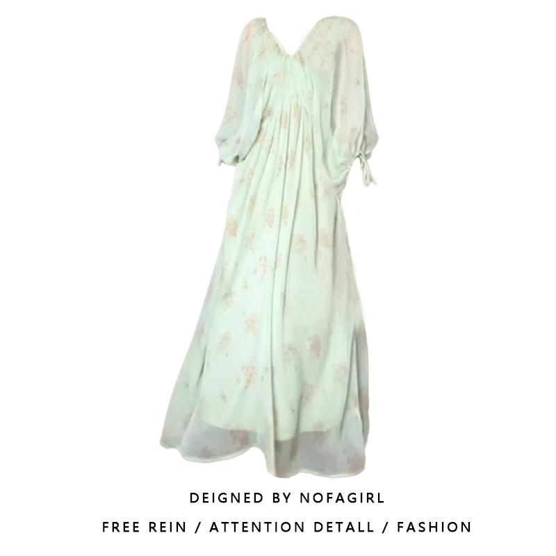 大码胖MM法式甜美高级感褶皱碎花连衣裙女夏季海边度假风绝美长裙