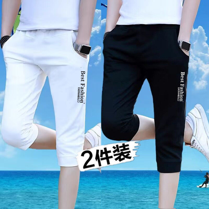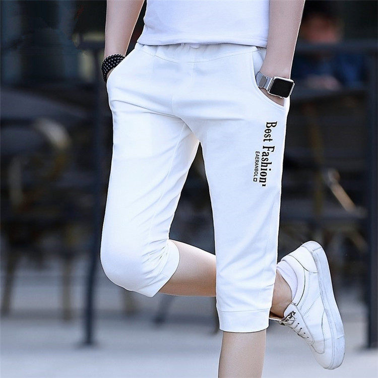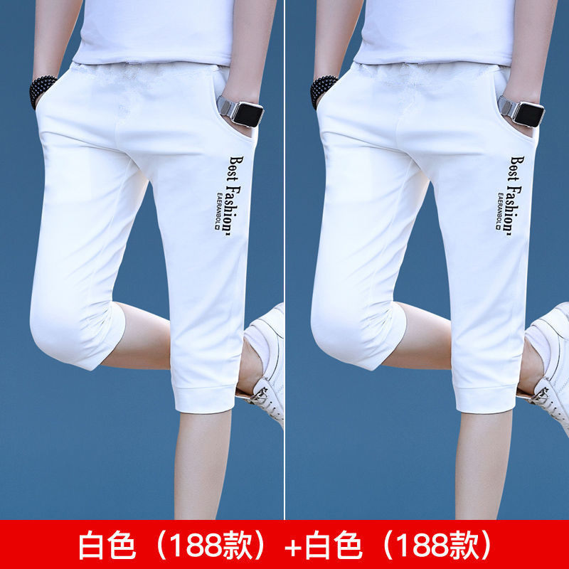 冰丝七分裤男士夏季薄款白色短裤男款潮流修身小脚休闲运动中裤子
