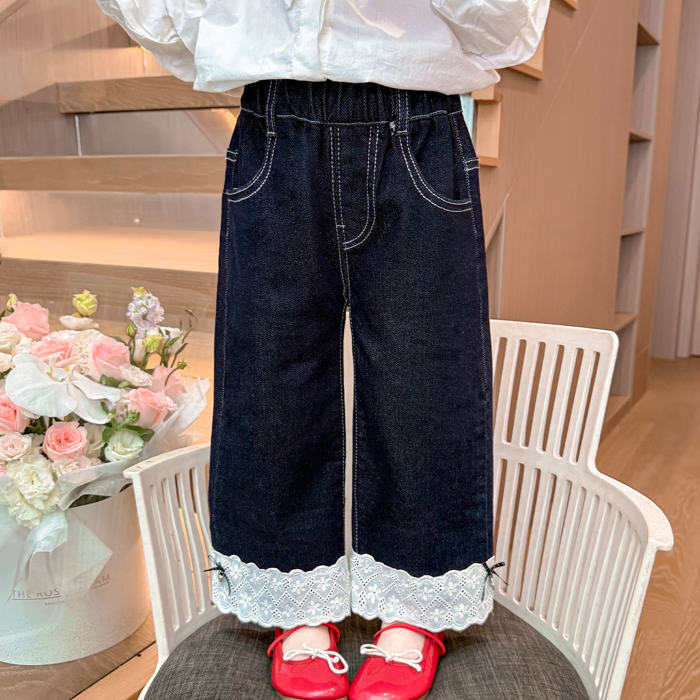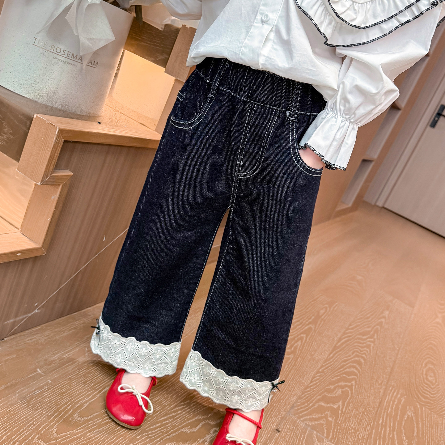 女童外穿牛仔裤春秋款2026新款儿童直筒裤子女宝宝春季蕾丝早春装