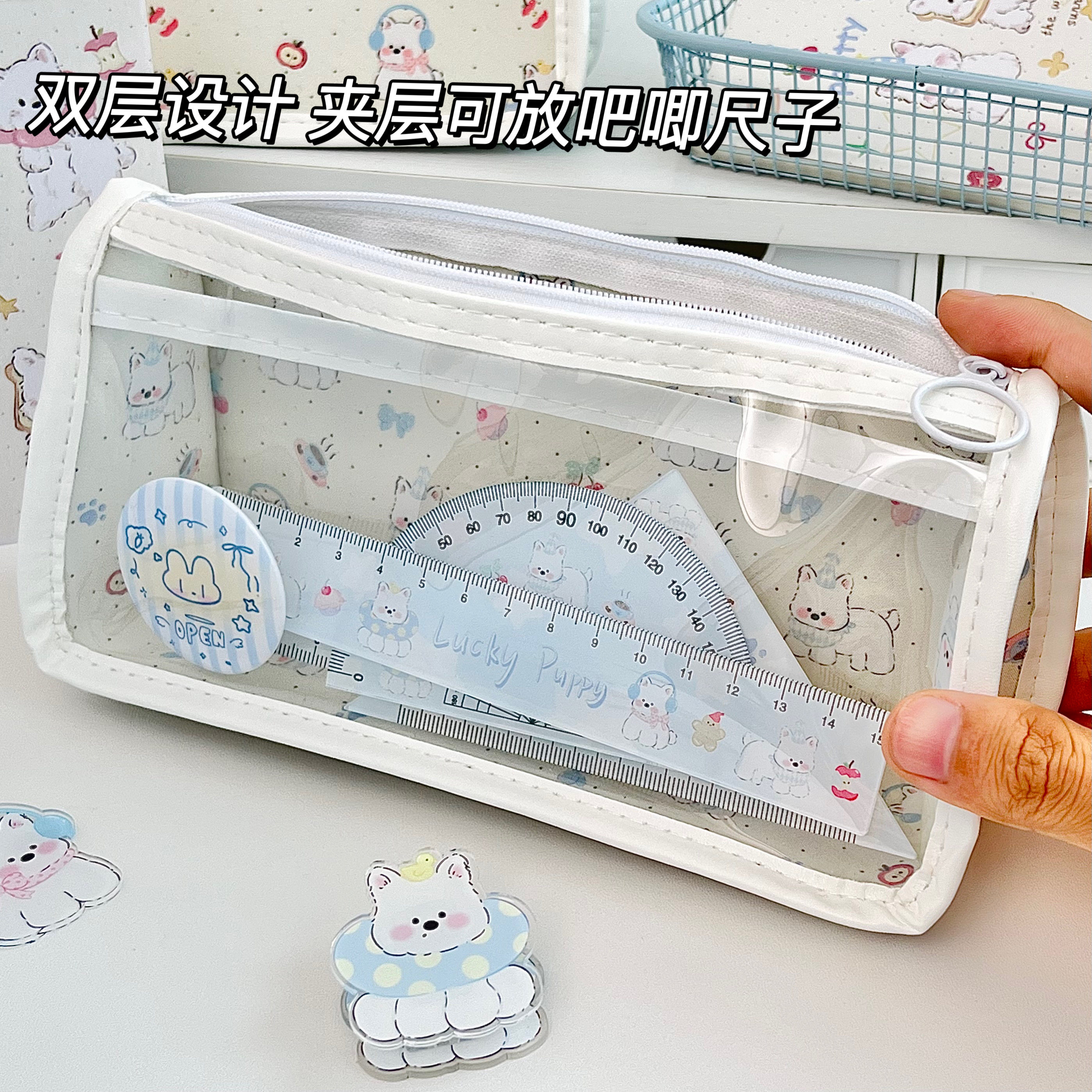 透明笔袋大容量女ins简约初中生高颜值高中生小学生三角化妆包袋