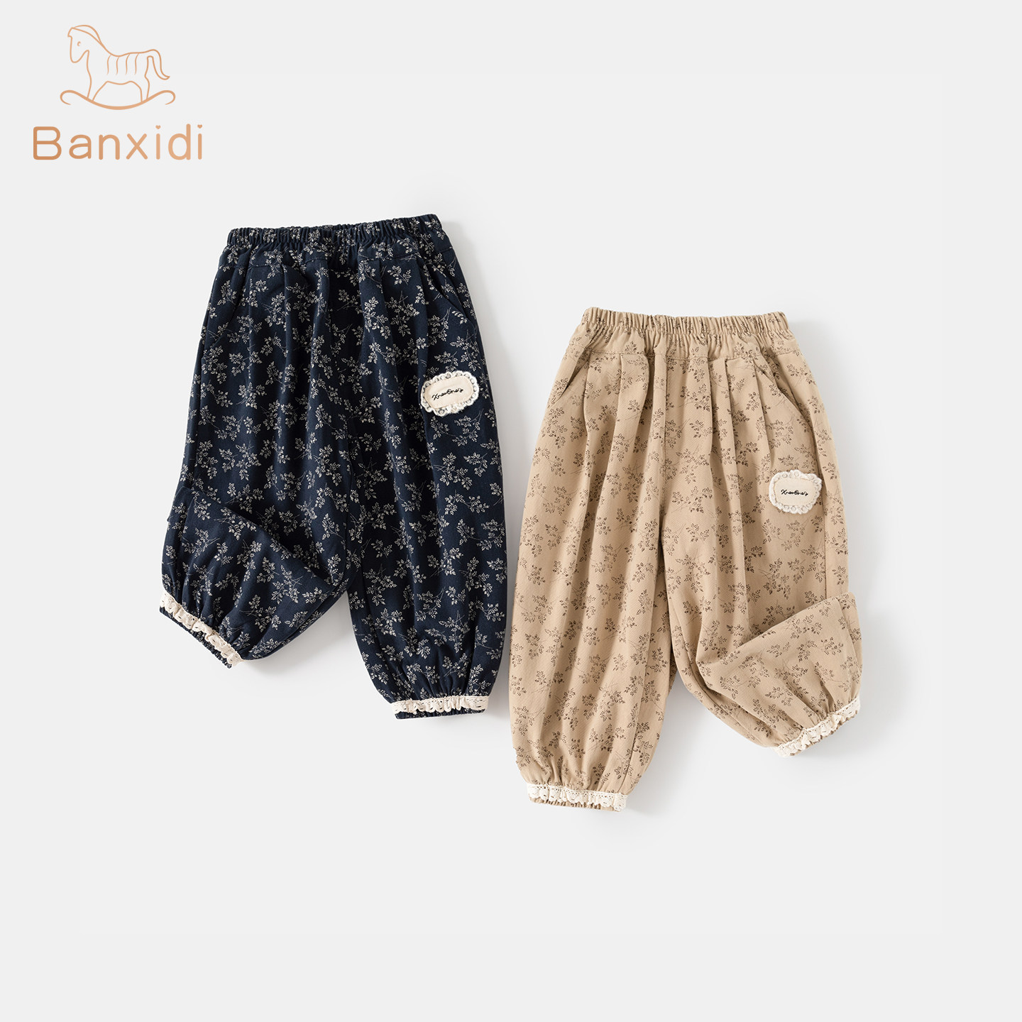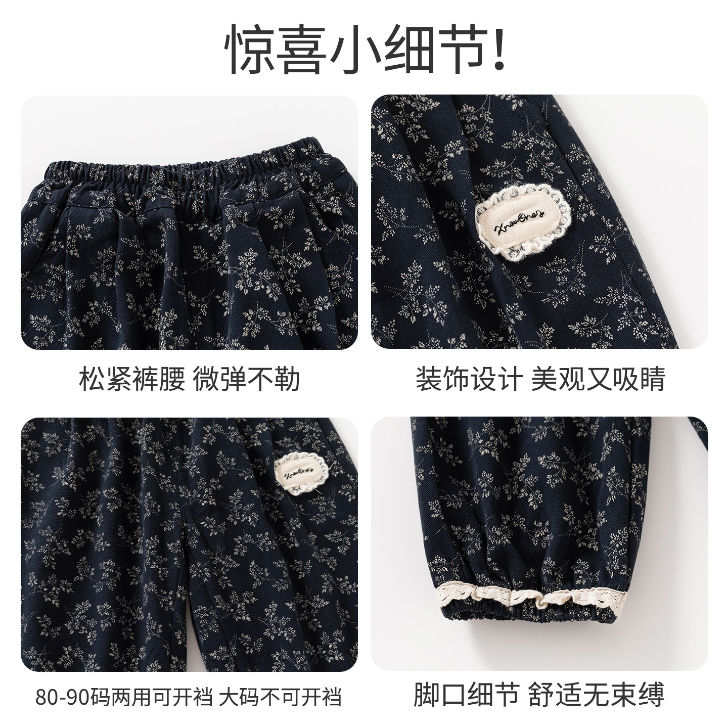 班喜迪女童裤子春装2026新款洋气宝宝休闲裤春秋款儿童碎花灯笼裤