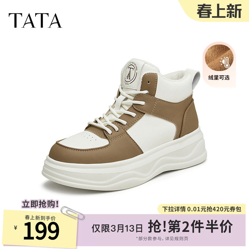 TATA他她厚底休闲板鞋女鞋子加绒增高高帮鞋通勤小白鞋WH703DD4