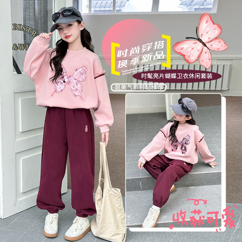 女童春装休闲套装2026新款洋气时髦卫衣小女孩春秋宽松运动两件套