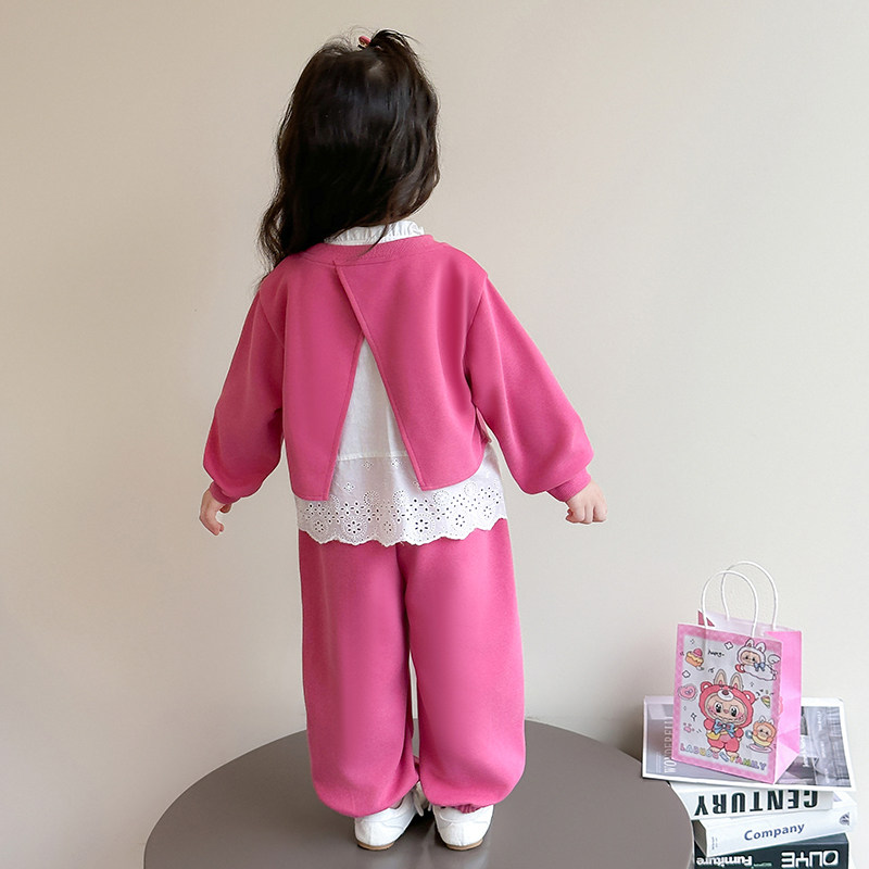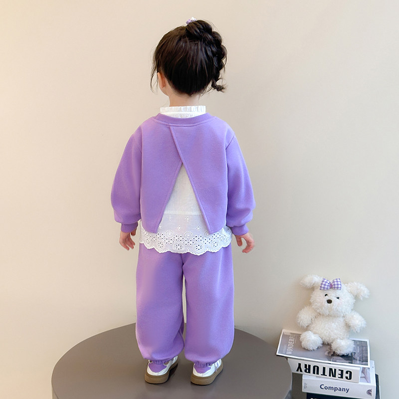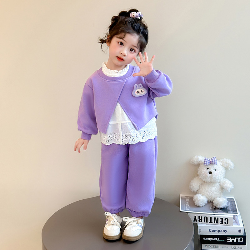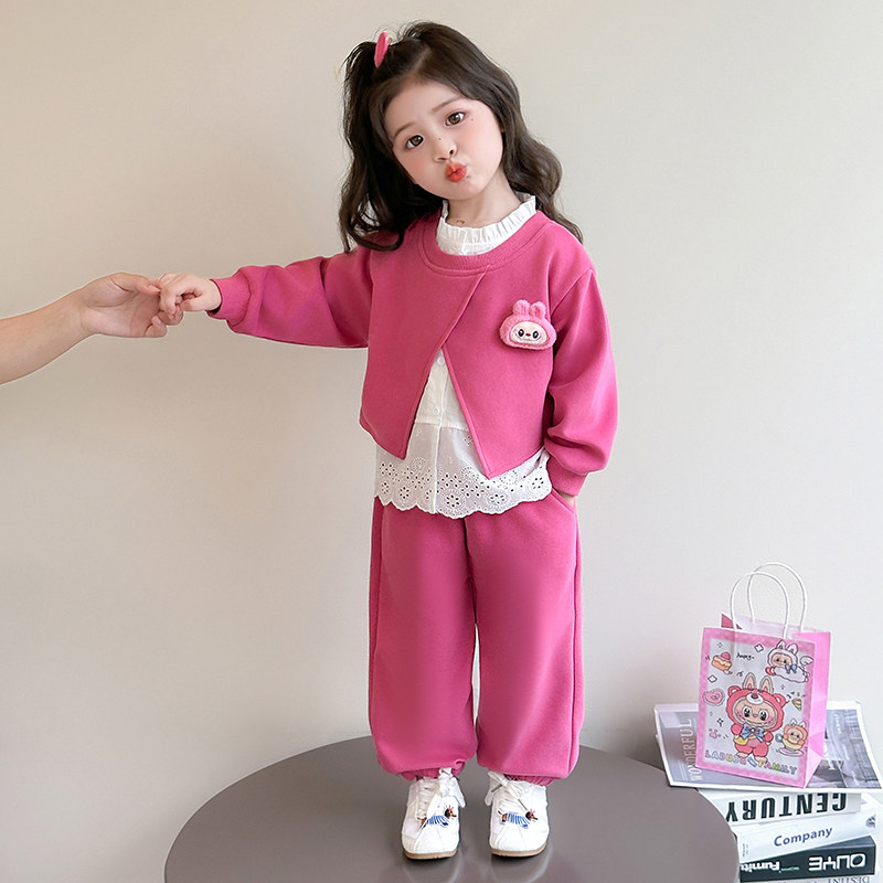 女童套装春秋季2026新款洋气时髦儿童春装女宝宝假两件卫衣两件套