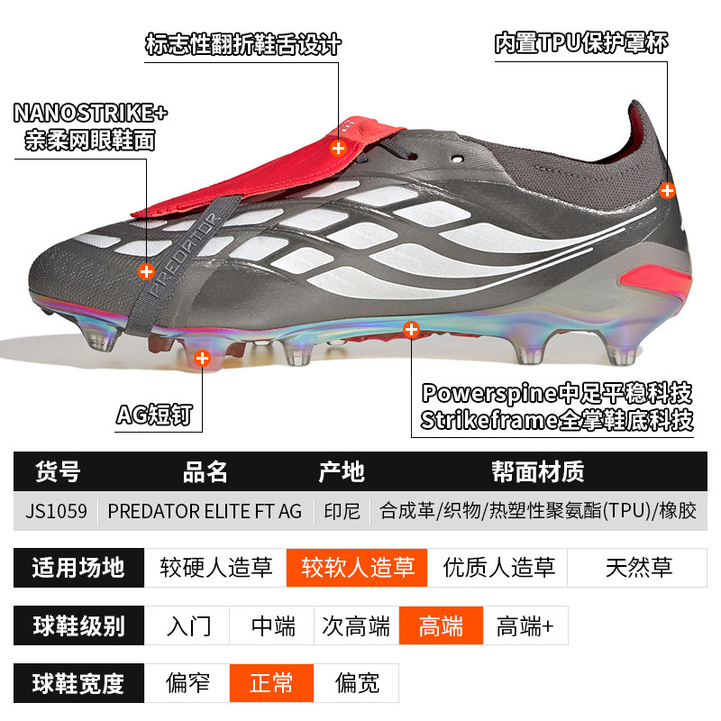 酷锐足球阿迪达斯PREDATOR猎鹰26超高端AG短钉翻鞋舌足球鞋JS1059