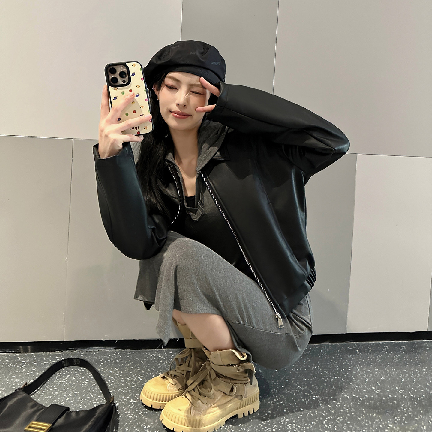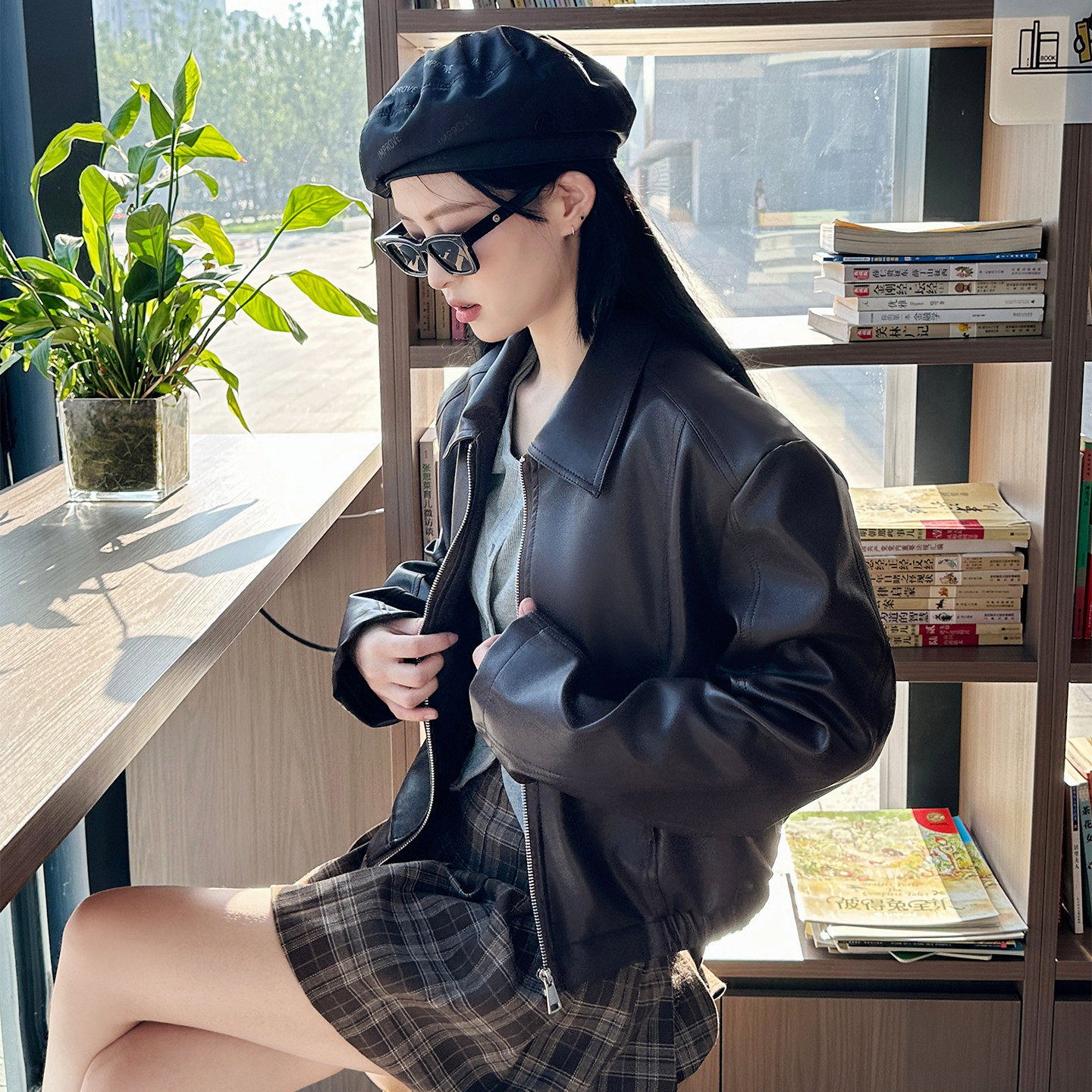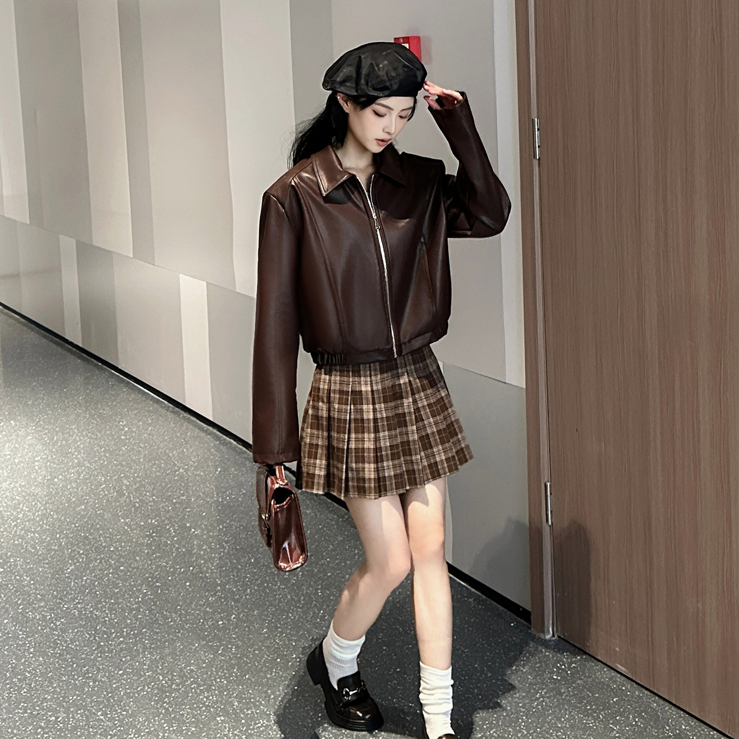 港风复古pu皮衣外套女款春秋高级感短款百搭时尚肌理感机车夹克