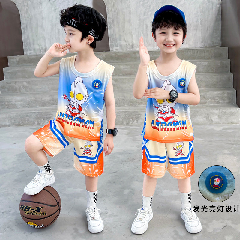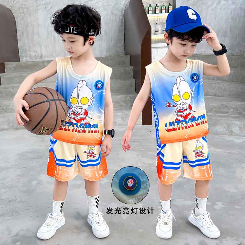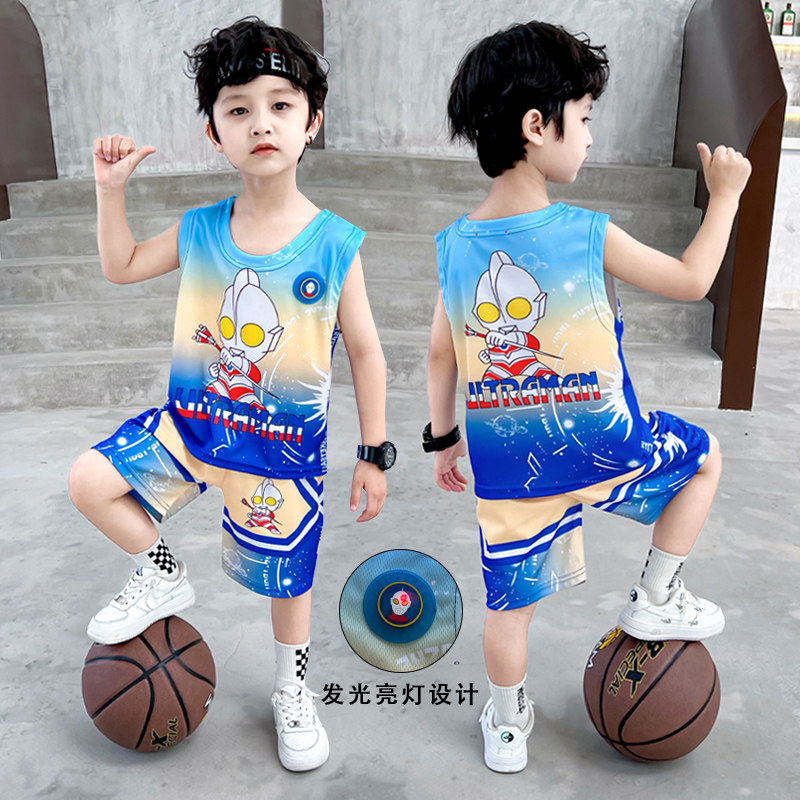 男童夏装背心套装潮宝宝冰丝篮球服小儿童无袖速干奥特曼衣服薄款